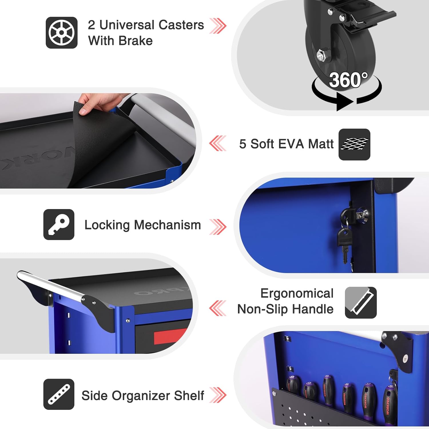 WORKPRO Premium 28" 2-Drawer Rolling Tool Cart, Heavy Duty Utility Industrial Service Cart Storage Organizer with Wheels and Locking System, for Mechanic, Warehouse, Garage, Workshop, 400 lbs Load