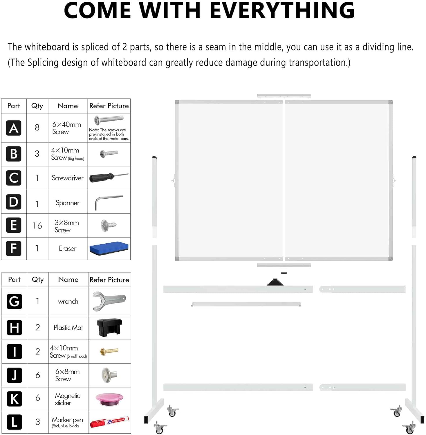 - Easy To Assemble & Accessories: Easy assembly without any prior DIY experience, with assembling instruction sheet & tools included. Complete writing and erasing accessories, holder tray and magnets included.