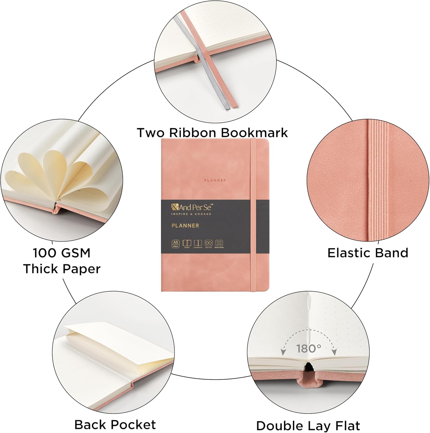 And Per Se Undated Academic Planner, A5 Weekly Calendar Planner, 72 Weeks Hardcover to Track Goals, Teacher Student Planning Book with Monthly Tab Stickers & Back Pocket (Pink)