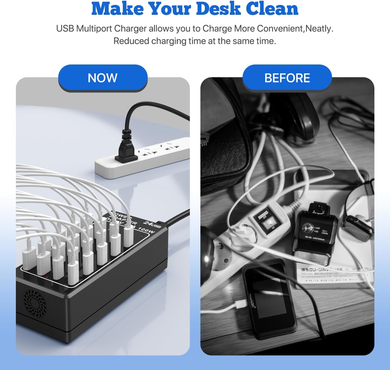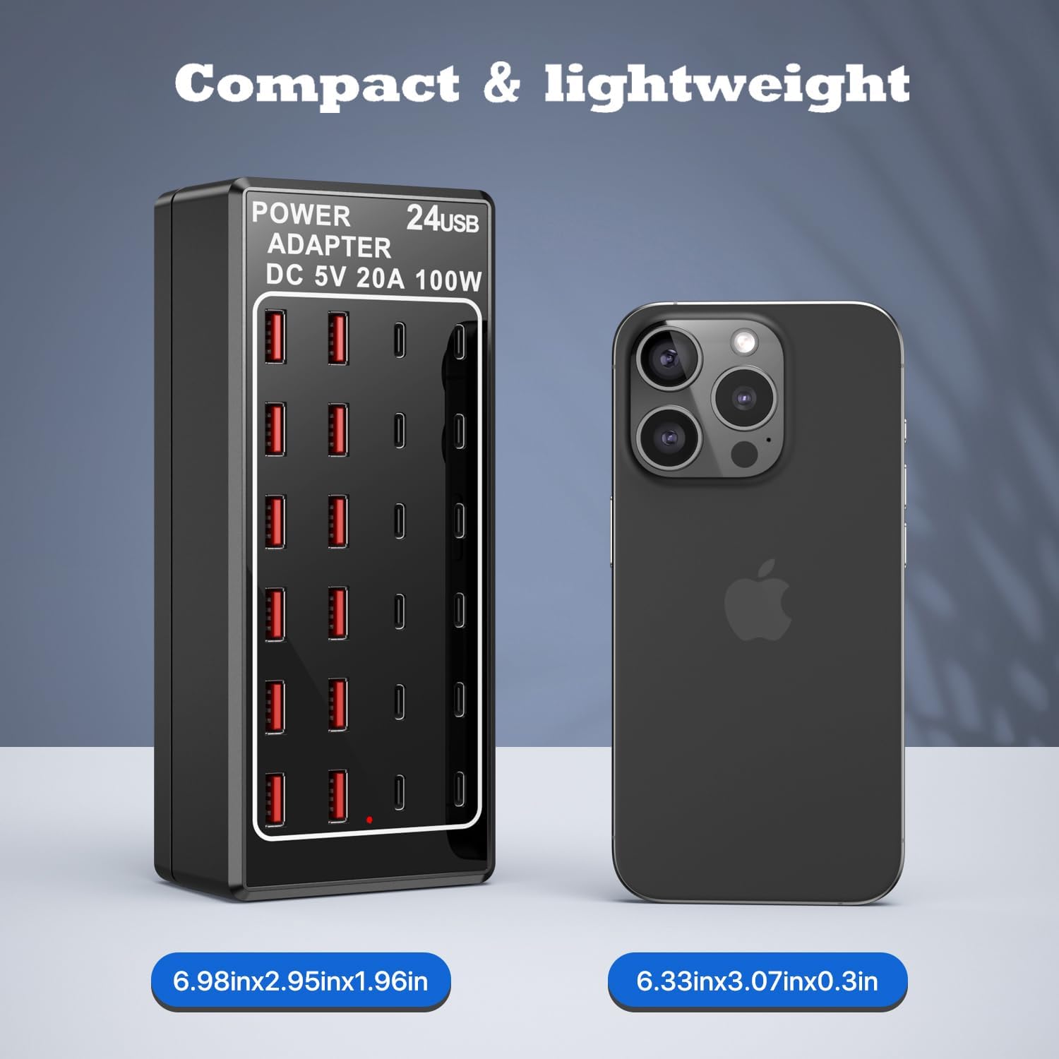 - β‘γ24 Port Charging StationγUSB Charger Station Block with 12-USB-C ports and 12-USB-A portsοΌEach port max 2.4A), allowing multiple devices to charge simultaneously, with a total output of up to 100W. The USB C Charger Block provides the fastest charging speed and intelligently detects the power demand of each port of the connected device, ensuring safe and fast charging of the charger.