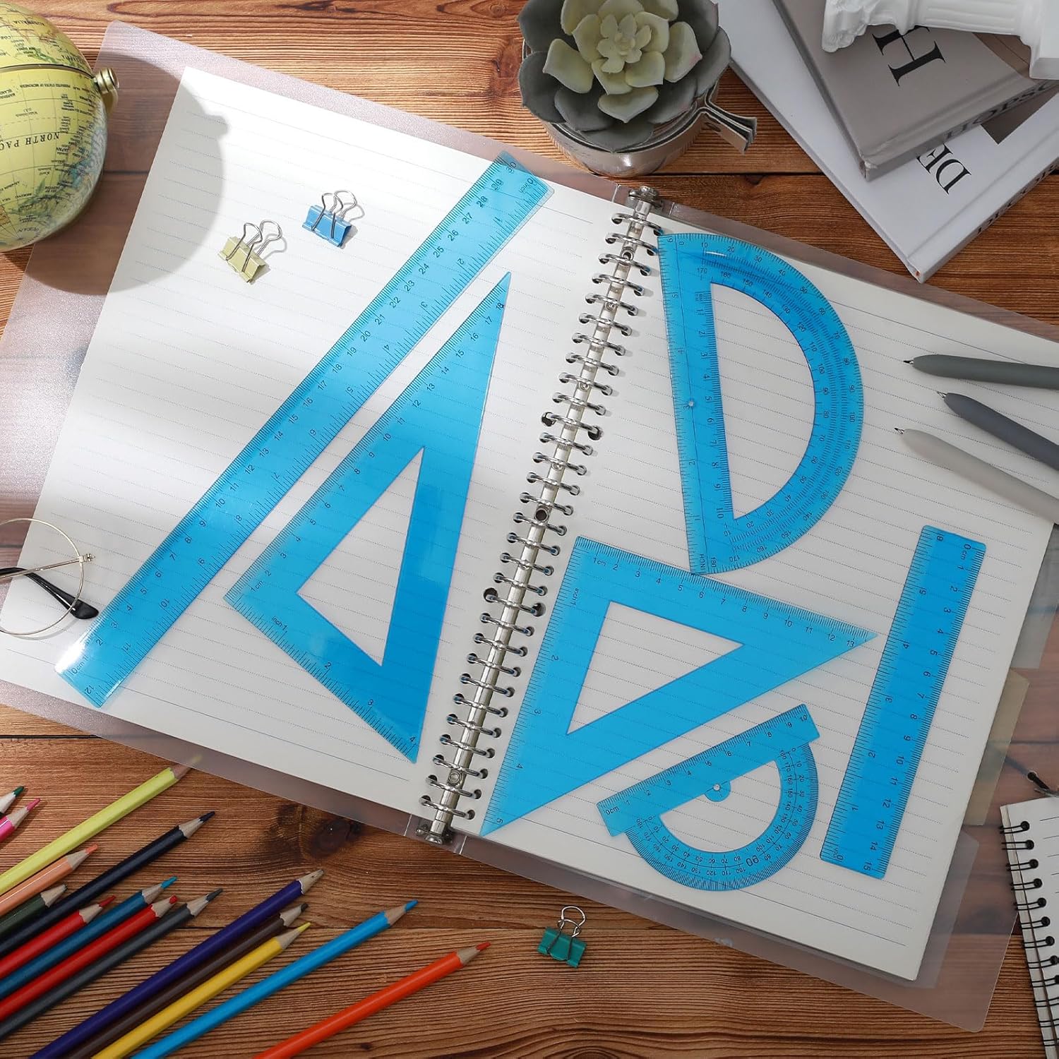 - Complete math tool set: you will be provided with 2 protractors of 15.5 cm and 10.4 cm, 2 triangle rulers of 45 degree and 60 degree, 2 straight rulers of 6 inch/ 15 cm and 12 inch/ 31 cm, totally 6 pieces; The complete combination meets the needs of various occasions, you can choose the right ruler to work according to your needs