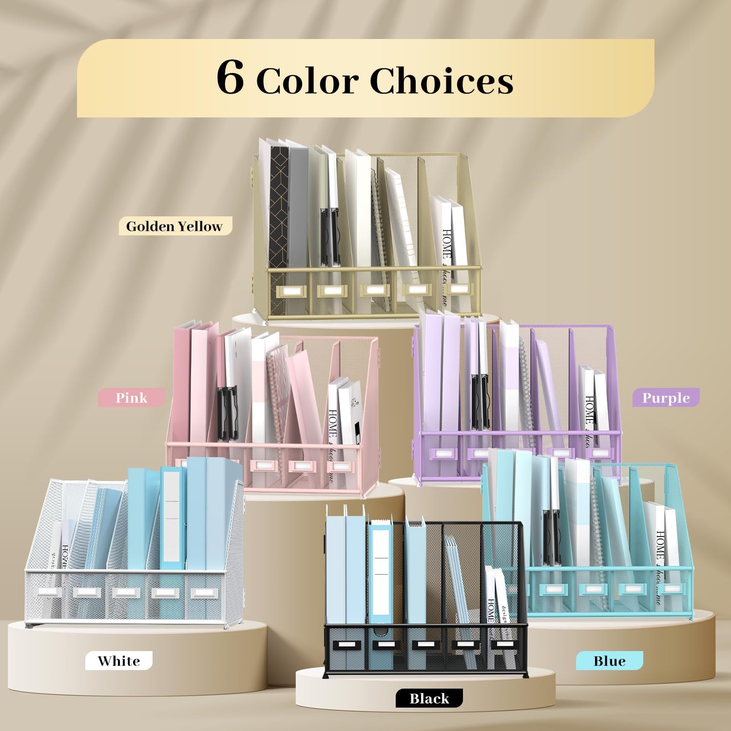 - [Space-Saving] Our mesh magazine file holder features 5 compartments, designed to consolidate your desktop items. This file organizer tames desk clutter, saves valuable space, and maintains a clean and orderly workspace.