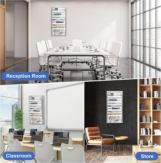 - All-in-One Mail Center: Mail organizer wall mounted stores A4 files, catalogs, outgoing mail. Doubles as brochure display for clinics/workshops. Converts clutter to order.
