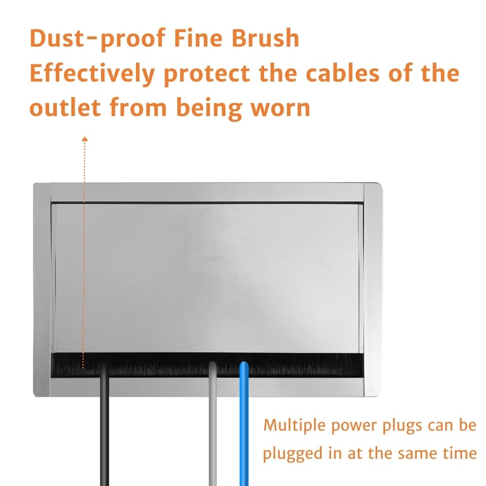 - 【High-quality Materials】This product is made of sandblasted aluminum panel, solid and durable. It is with fine brush which can block dust and protect the cables of the outlet from being worn.Fully enclosed bottom box, wiring is not exposed. It is safe. It can be customized with different modules.