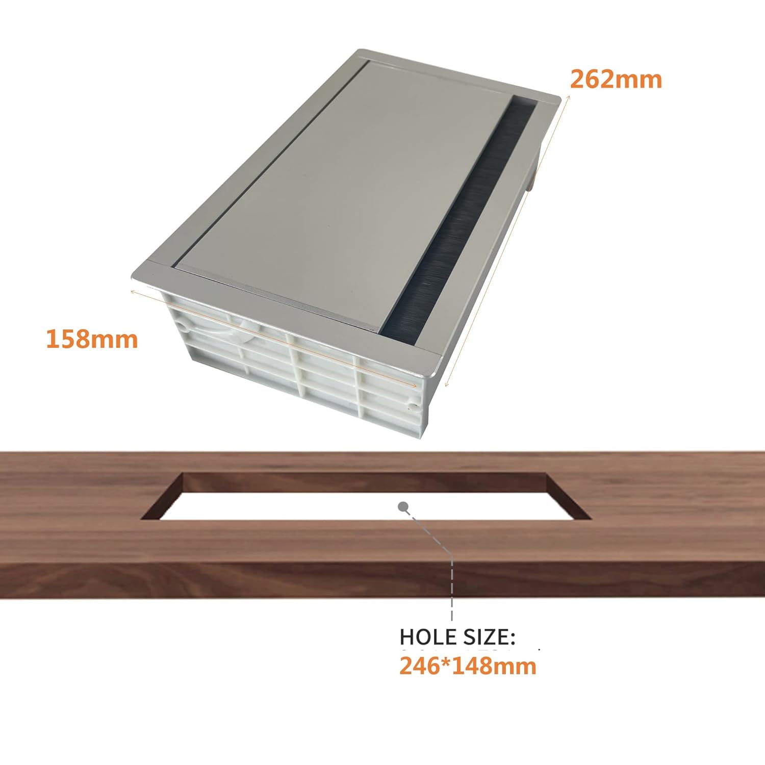 - 【Easy to Install】Cut a rectangle hole on table, place the outlet into the hole, then screw it tight. Panel size: 10.31" x 6.22"(262 x 158 mm), suggested hole cut size: 9.69" x 5.83" (246x 148mm)