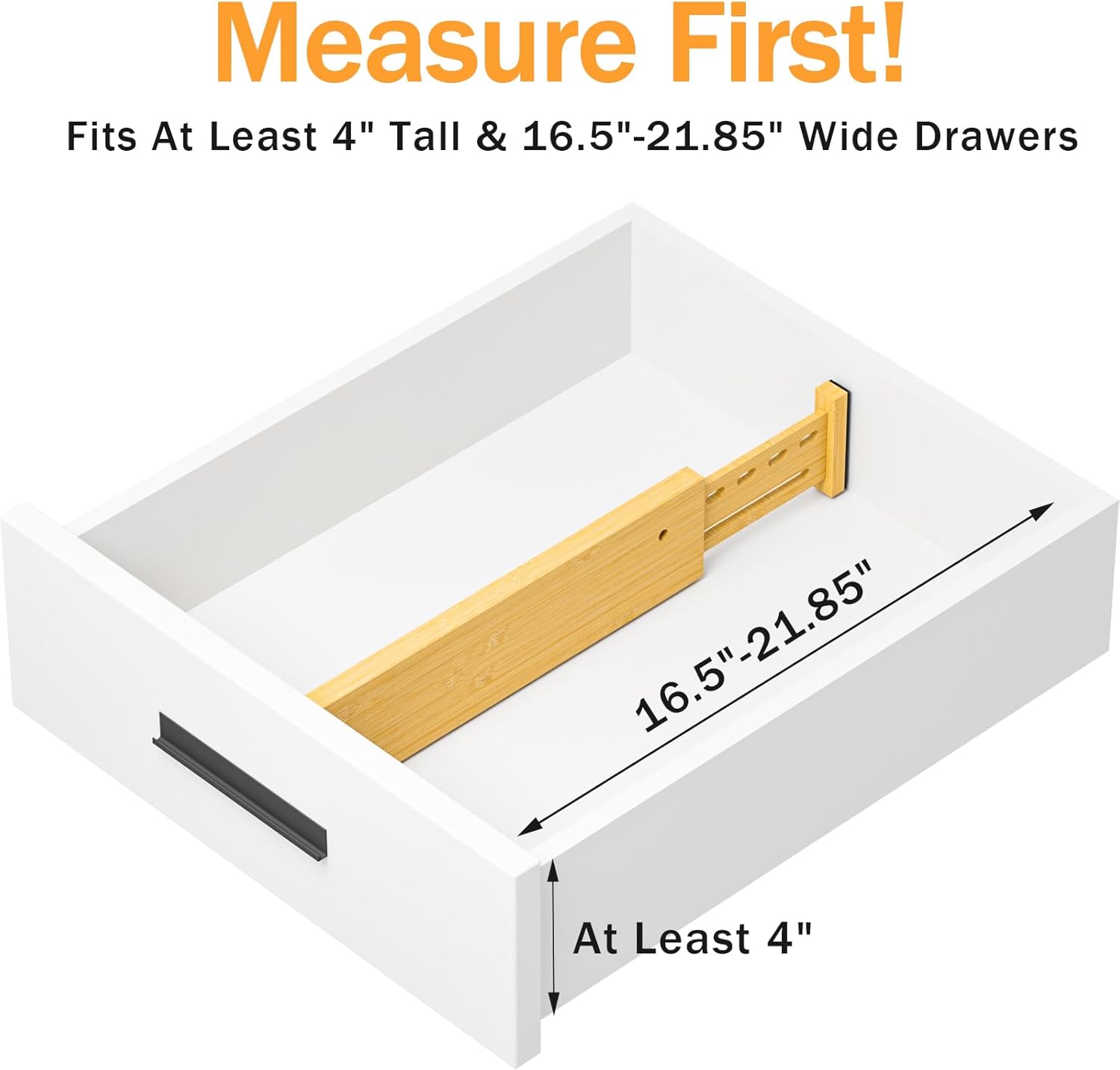 - EXPANDABLE SIZE TO FIT MORE DRAWERS: The drawer dividers are adjustable from 16.5'' to 21.85'' length, 4'' height.The dividers can be used vertically, horizontally or stacked to to meet various organizational needs. PLEASE MEASURE THE DRAWER SIZE BEFORE PURCHASE!