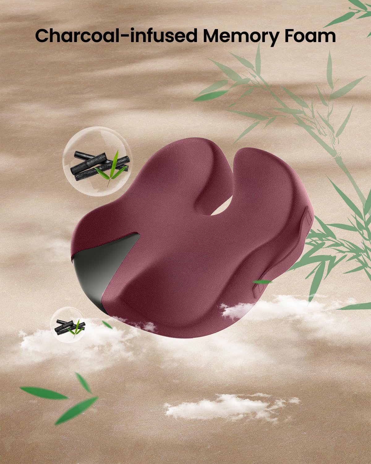 ProtoArc Seat Cushion, Office Chair Cushion for Sciatica, Coccyx Cushion, Ergonomic Memory Foam Seat Cushion for Car, Home, Pressure Relief Pad for Hip, Tailbone, All Day Comfort - Wine Red
