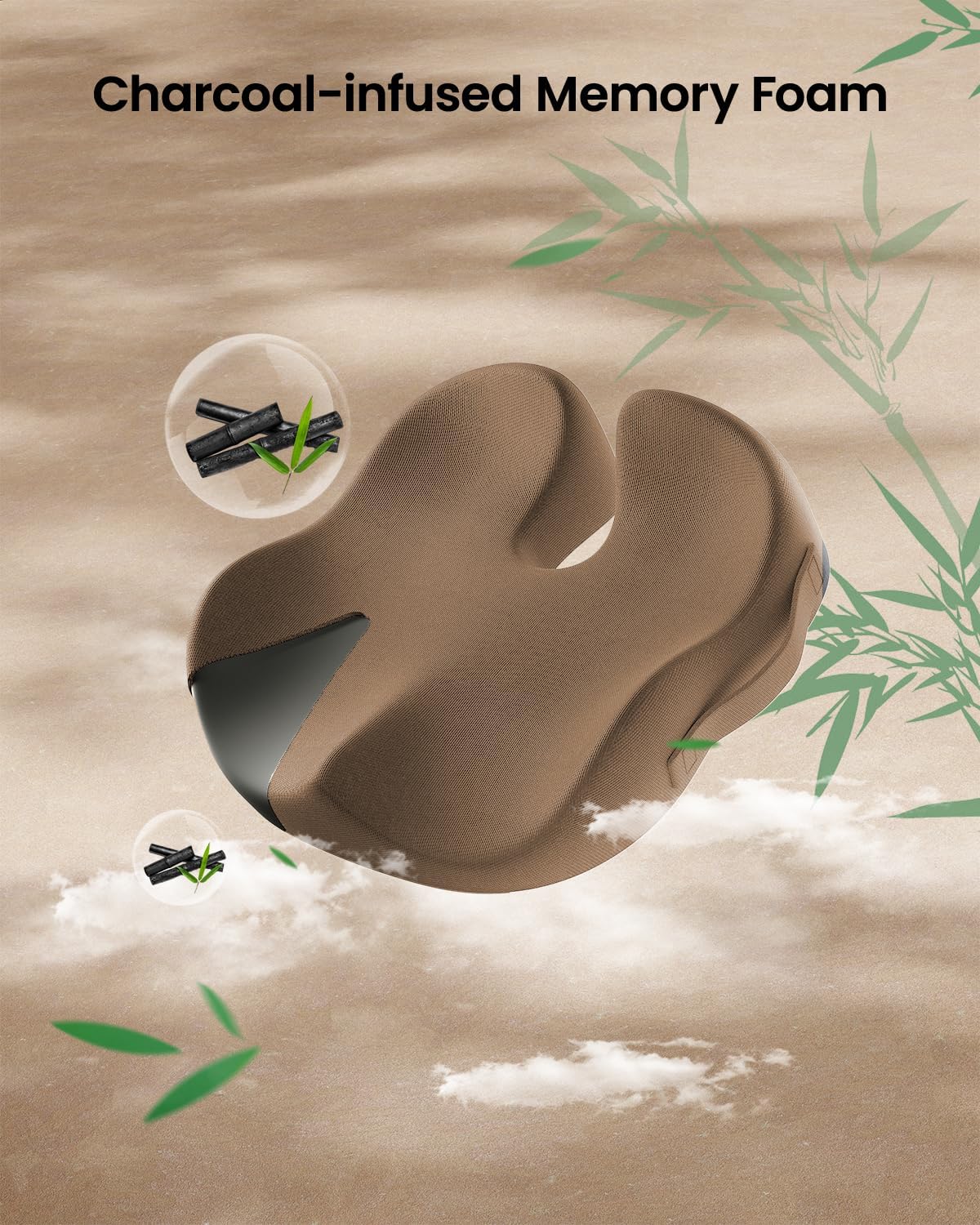 ProtoArc Seat Cushion, Office Chair Cushion for Sciatica, Coccyx Cushion, Ergonomic Memory Foam Seat Cushion for Car, Home, Pressure Relief Pad for Hip, Tailbone, All Day Comfort - Coffee