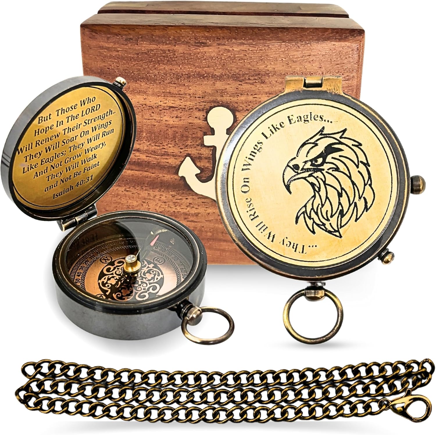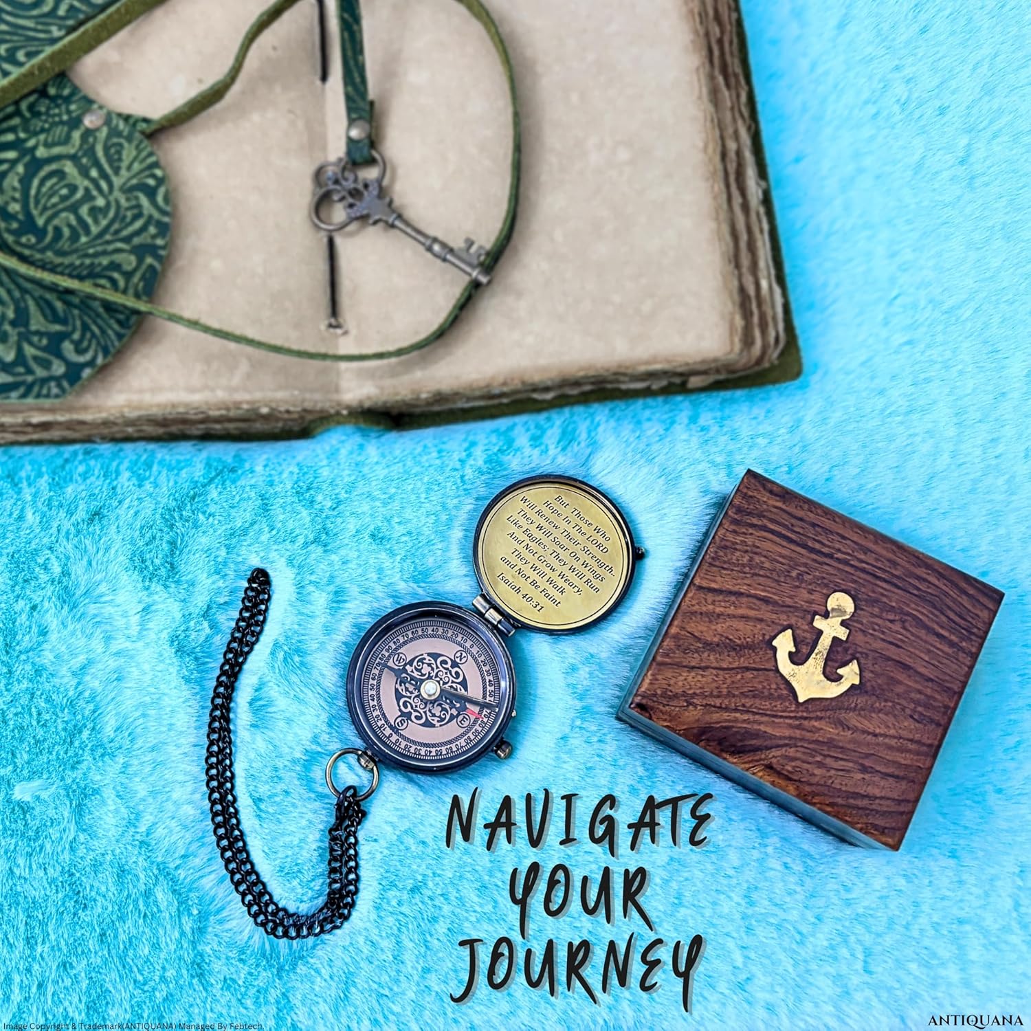 Brass Directional Engraved Compass, Baptism Gifts for Boys Girls, First Communion, Christian Gifts for Men, First Confirmation Gifts for Boys, Inspirational