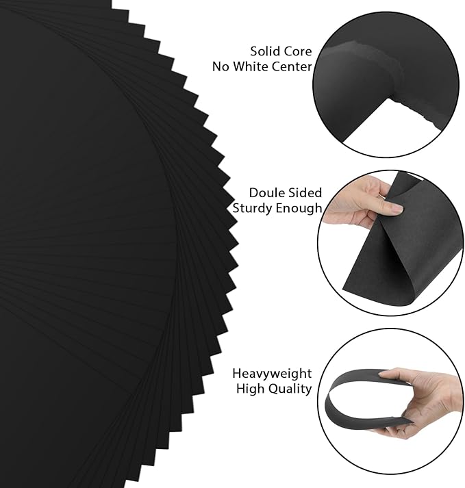 OcePor 100 Sheets Black Cardstock Paper, Colored Printer Paper 8.5 x 11, Card Stock Thick Construction for Craft,Scrapbook,Office Printing, Invitations, Certificates,92 lb/250gsm