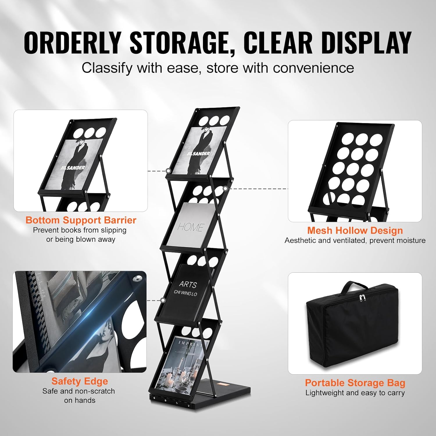 - Quality Craftsmanship, Lasting Durability: Crafted with meticulous attention to detail, VEVOR 4-tier 4 pockets foldable brochure display stand boasts a smooth and sturdy metal construction. No more worries about fade and deformation β this literature display stand is built to endure the test of time.