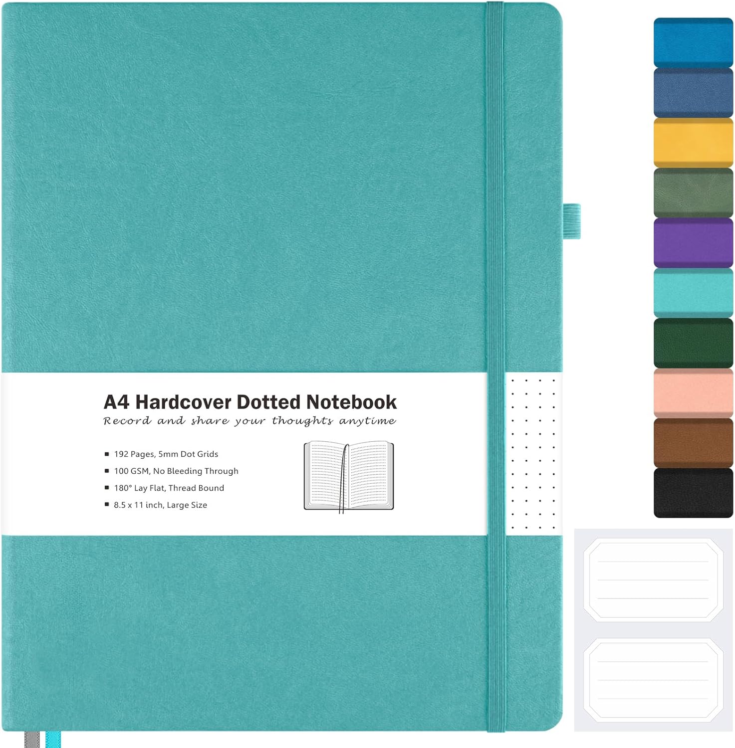 Dotted Journal, Hardcover Notebook 8.5 x 11, Dot Grid Notebook Journal for Women, Men, Large Leather Journals for Writing, Bullet, No Bleed Thick Paper, A4 Notebooks for Work, School, Notes, Teal