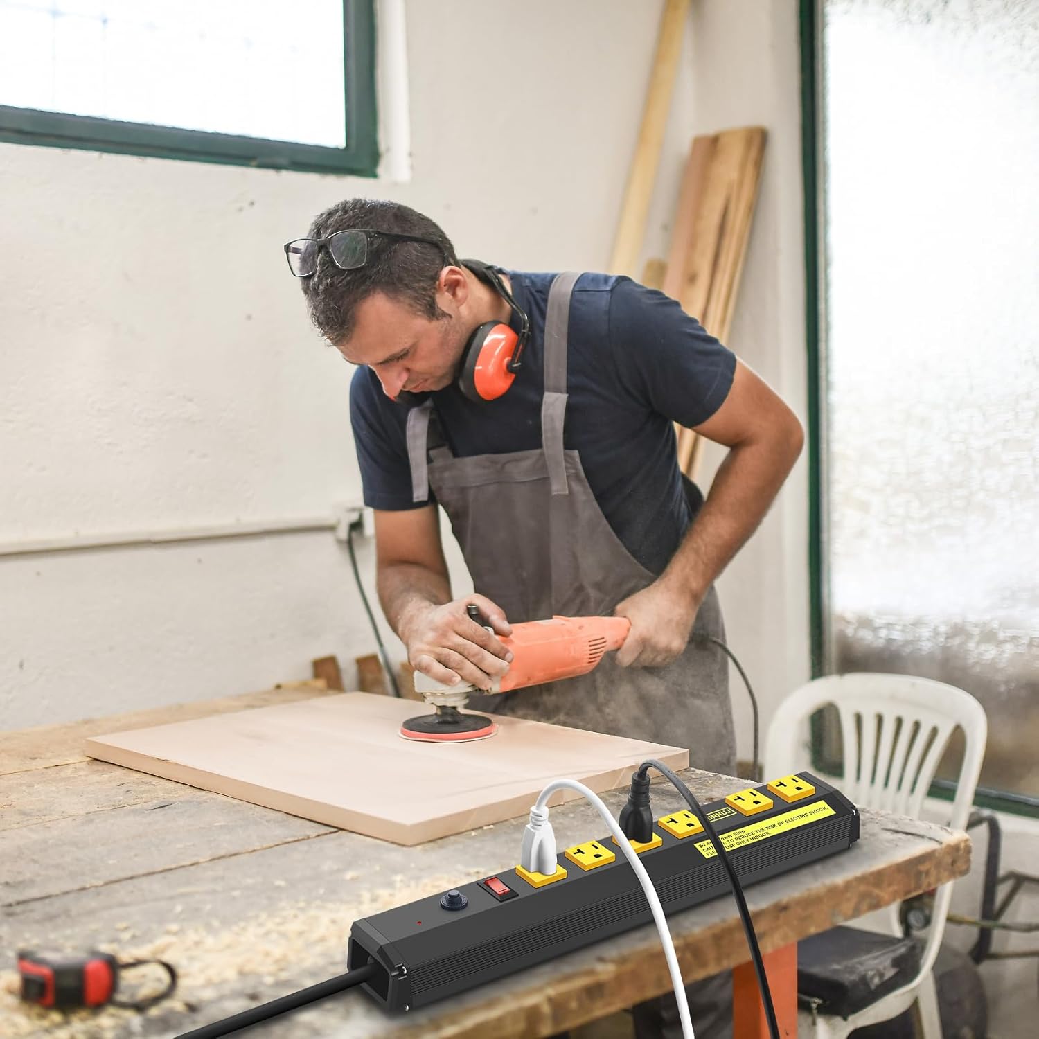 JUNNUJ Heavy Duty Metal Power Strip 20 Amp, High Amp Surge Protector 6 Outlet, 20A Power Strips Workshop Industrial Outlets Wide Spaced 6-20R T-Slot with Circuit Breaker, 12 Gauge Extension Cord 6ft