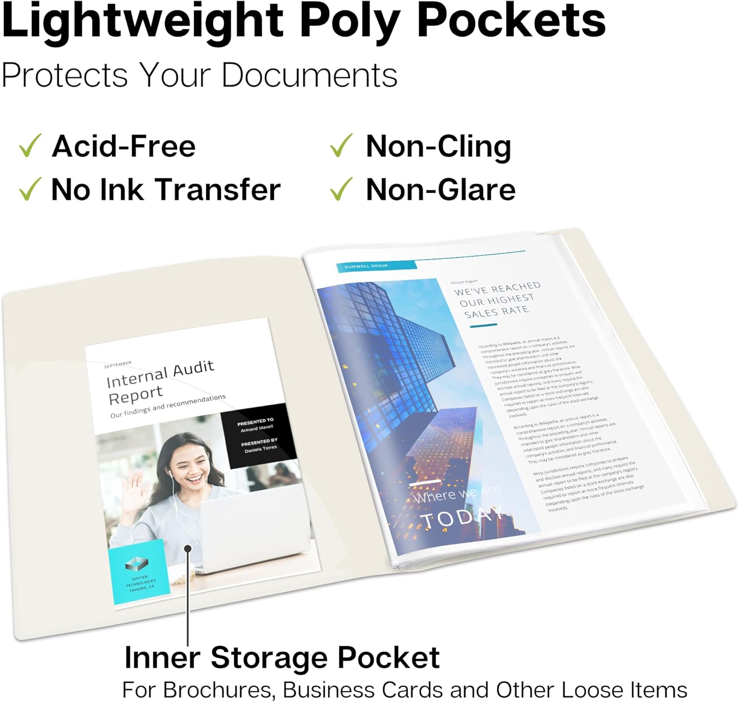 - DURABLE CONSTRUCTION, BUILT TO LAST: Premium plastic covers, reinforced binding resist tearing. Non-glare poly sleeves are dirt and moisture resistant, for a professional appearance every time.