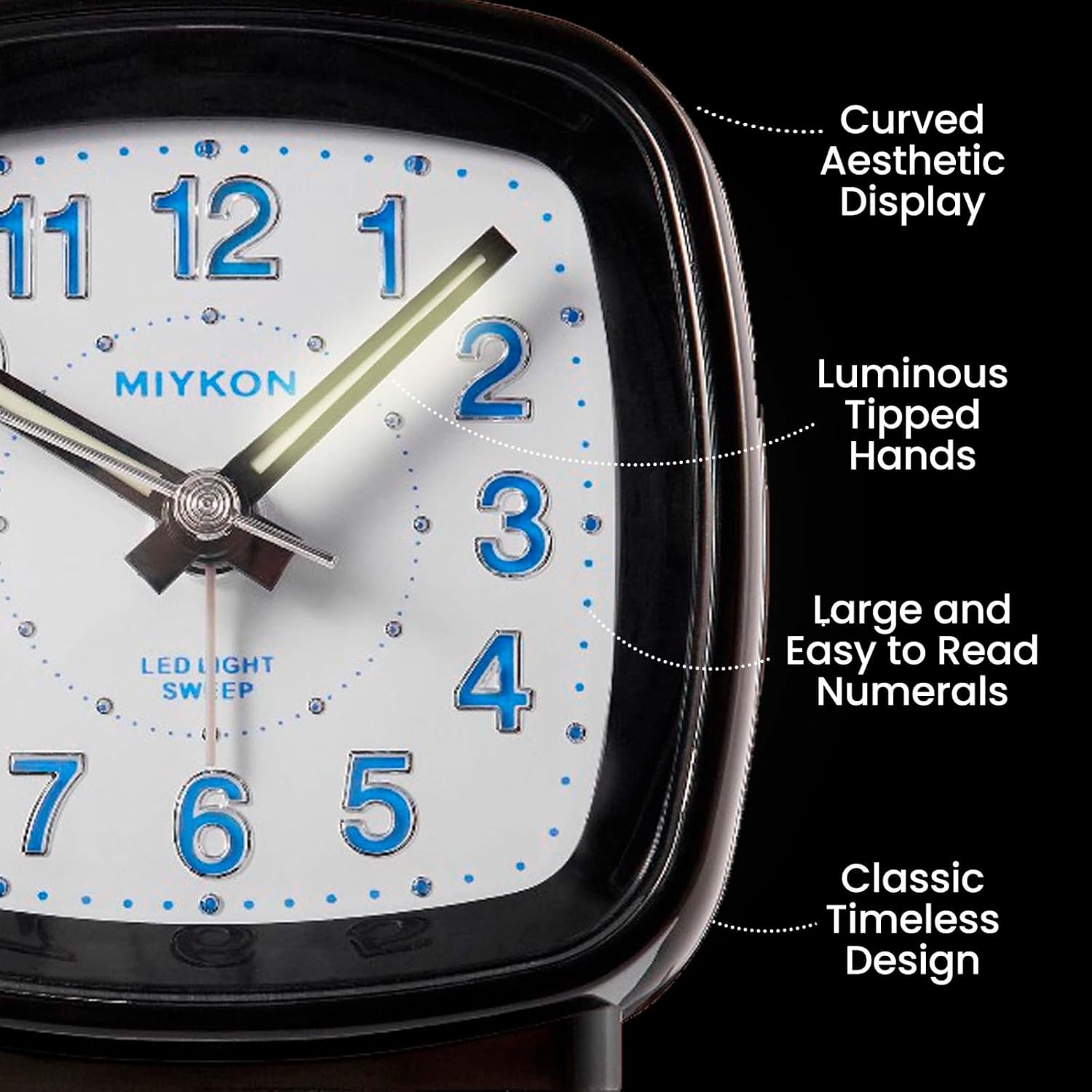 Miykon Small Square Analog Alarm Clock – Silent Non-Ticking, Battery Operated with LED Light & Snooze – Desk, Table, Travel or Bedside Clock for Bedroom, Office, Bathroom – Black 2.5 Inch