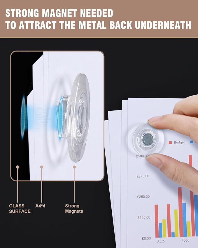 - ✔ 【Strong Magnetic Capabilities】Featuring a steel-backed surface, our board includes 4 super-strong magnets designed specifically for glass boards. Easily post documents, notes, or reminders—perfect for meetings, brainstorming, or home organization. (Standard magnets may not work due to glass thickness.)