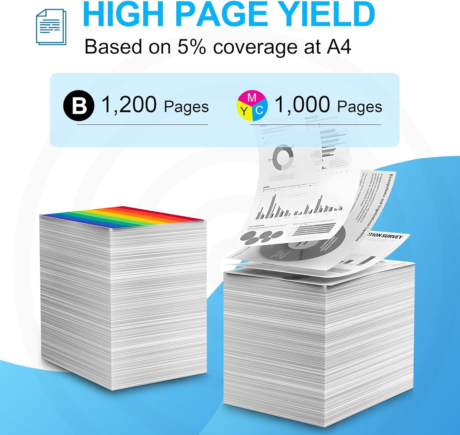 - Page Yield: Up to 1,200 pages black toner cartridge & 1,000 pages per color toner cartridge (at 5% coverage/A4 letter)