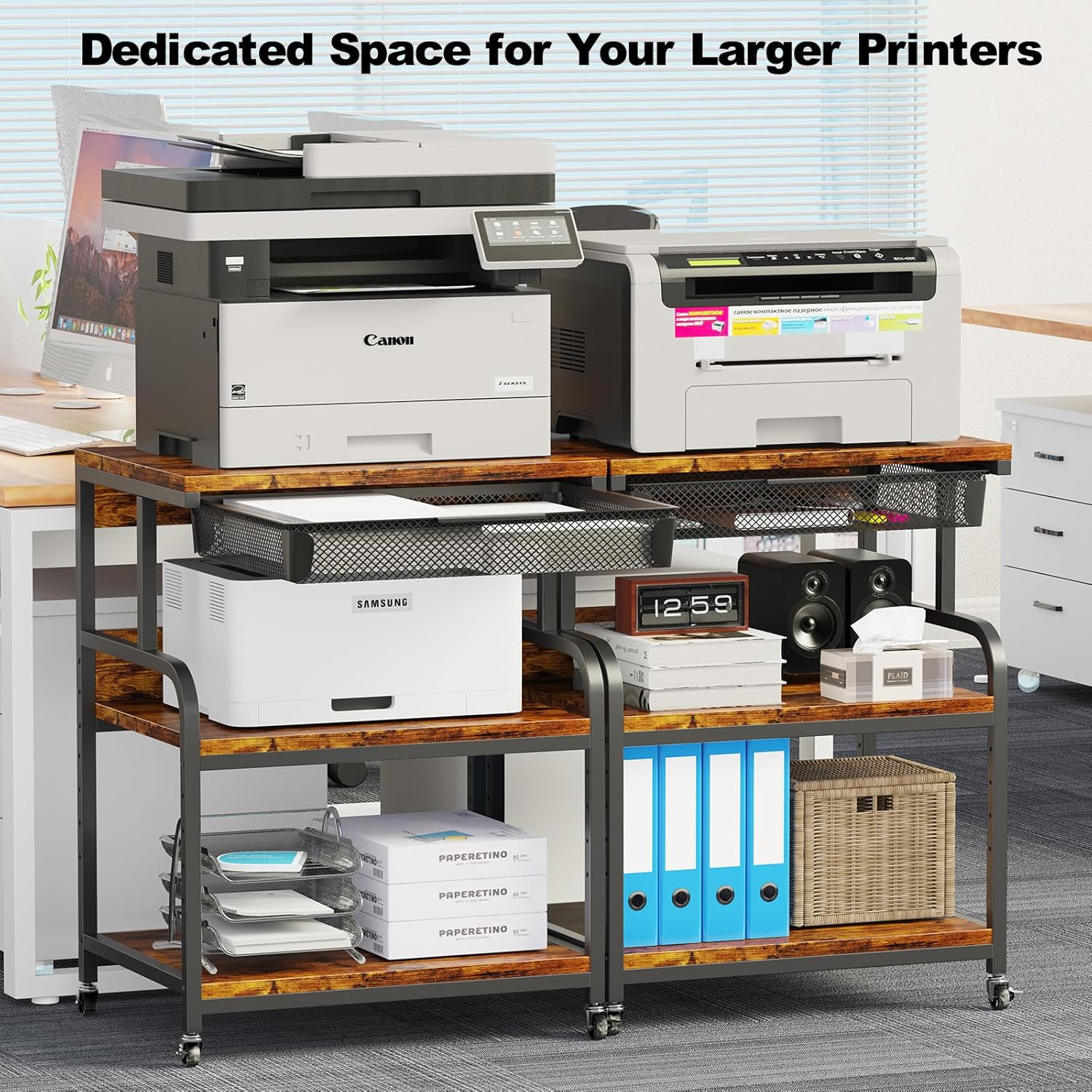 - 5 Adjustable Heights: The printer stand has five adjustable heights to accommodate your different printer size types.Conveniently storing multiple printers,faxes, making full use of vertical space to efficiently organize and store your items.
