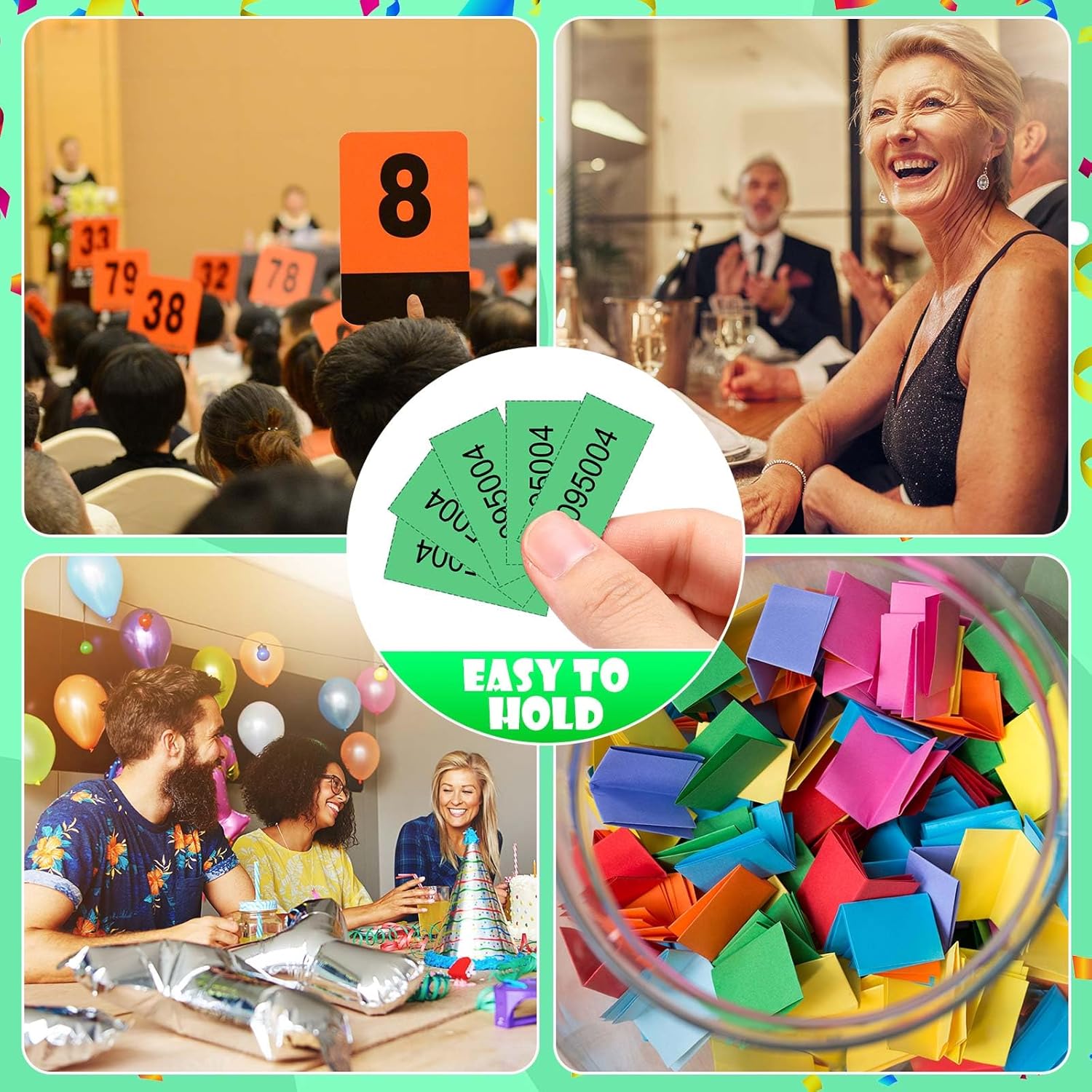 - What's Included in the Package: the package comes with 1000 sheets auction tickets in green, each sheet with 5 bid numbers, good selections for Chinese auction, penny auction, fund raising event and so on