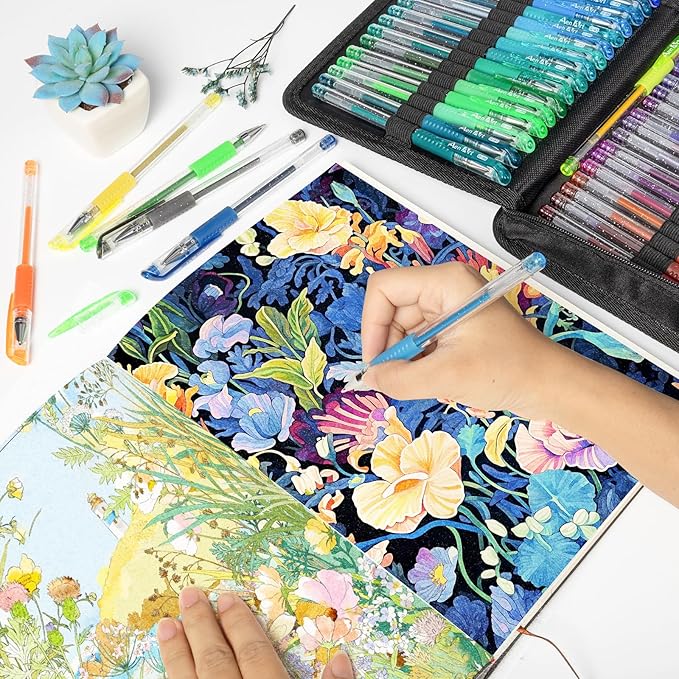 - Aen Art glitter gel pens come with 30% more ink, features 0.8mm-1mm ballpoint tip and soft grips. Which make our coloring pens last longer than others, perfect for adults coloring books, art project and journaling.