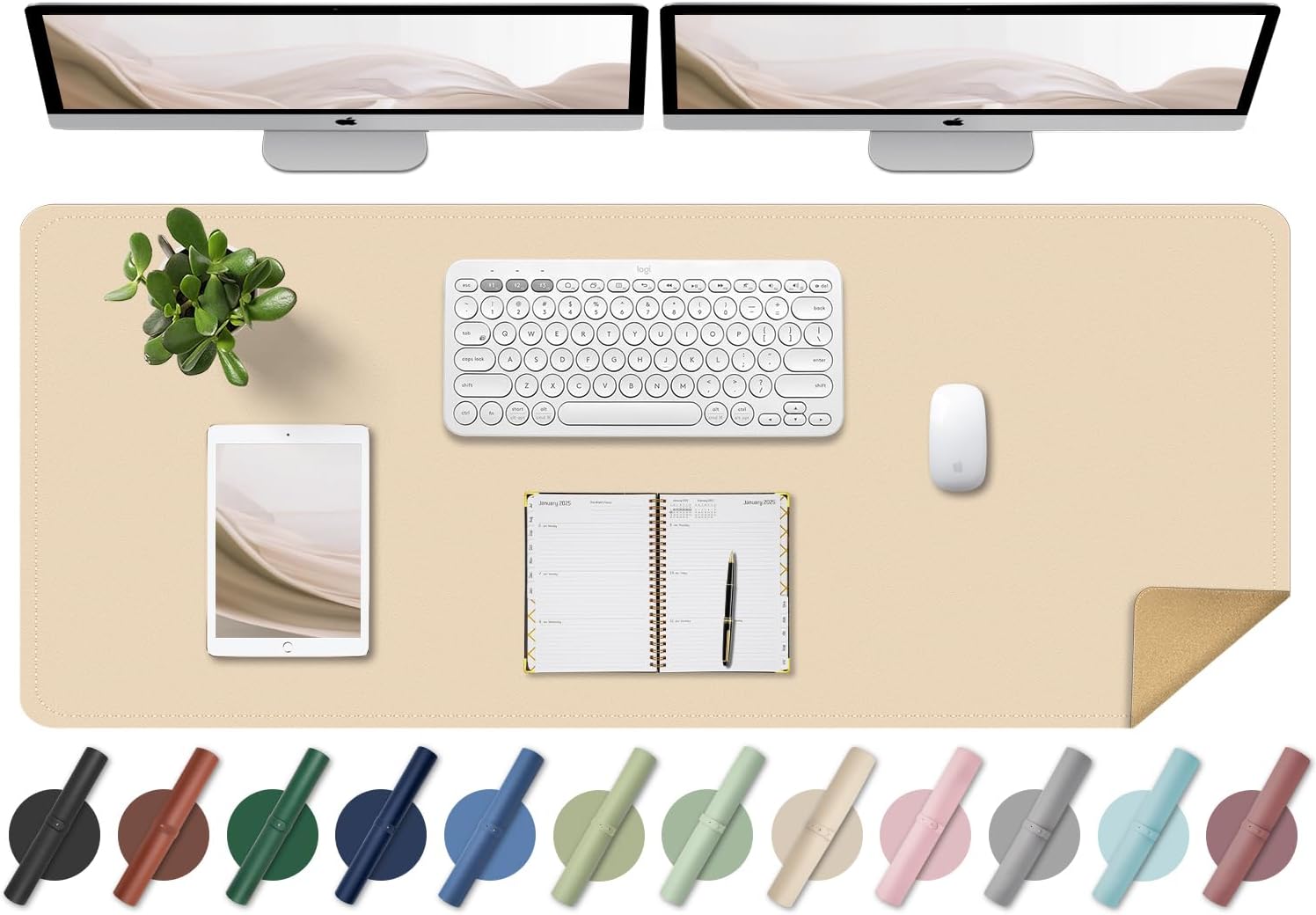 - Superior Protection Mat for Desk: Durable PU leather and cork material, provide reliable protection for your desk surface. Safeguard your tabletop from everyday wear and tear with our Dual-Sided Desk Pad. This large mouse pad and desk mat combo is a protective barrier, preventing scratches, scuffs, and spills from damaging your workspace.
