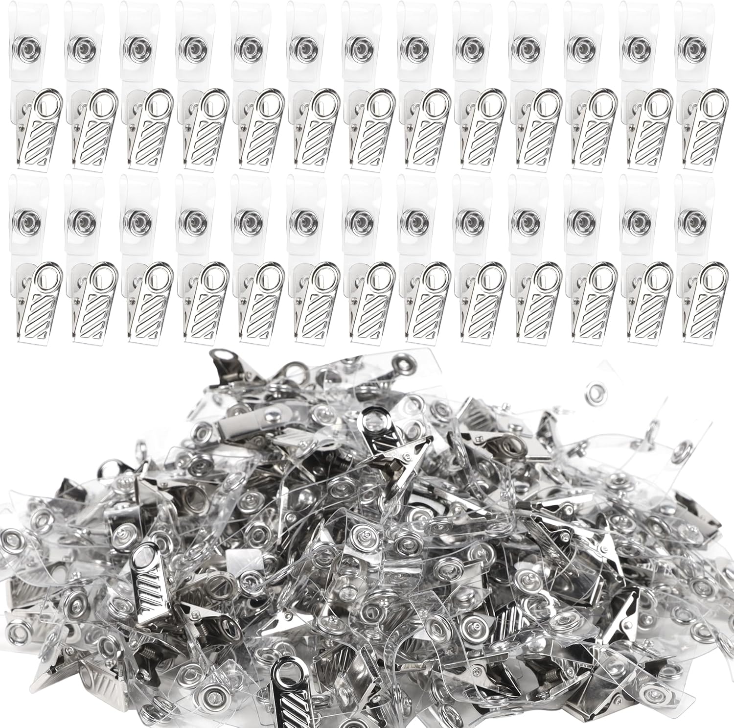 Happy Trees 200 Pcs Metal Badge Clips with Clear PVC Straps, ID Holder Clip for Badge Holders, Name Tags, ID Cards, Work Badges