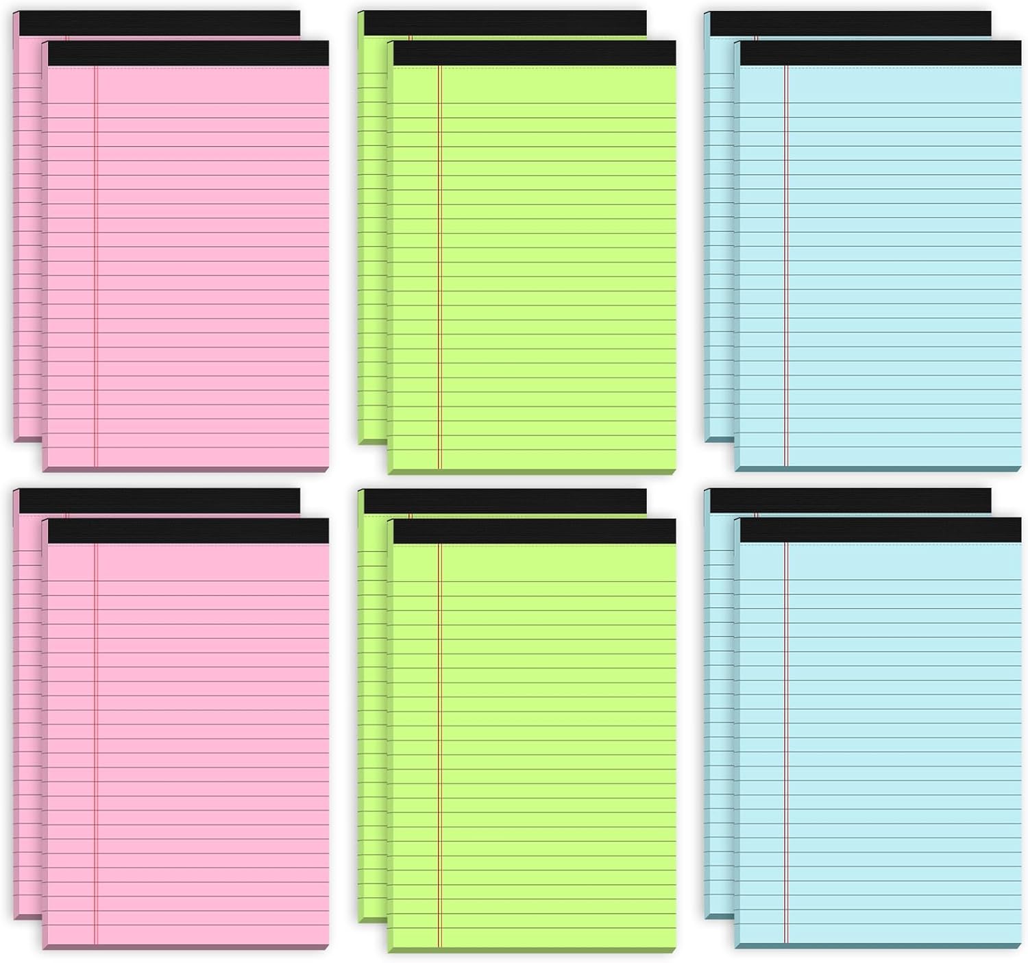 - 【YOU WILL GET】- This product includes 12 packs three colores (Blue, Green, Pink) writing tablets with 30 sheets, total in 360 sheets, 5x8 inches in size. The lined paper tablets 5x8 spacing between horizontal lines is about 7mm. These mini legal note pads 5x8 note paper sufficient quantity can meet your daily study and work needs, without worrying about running out of paper.
