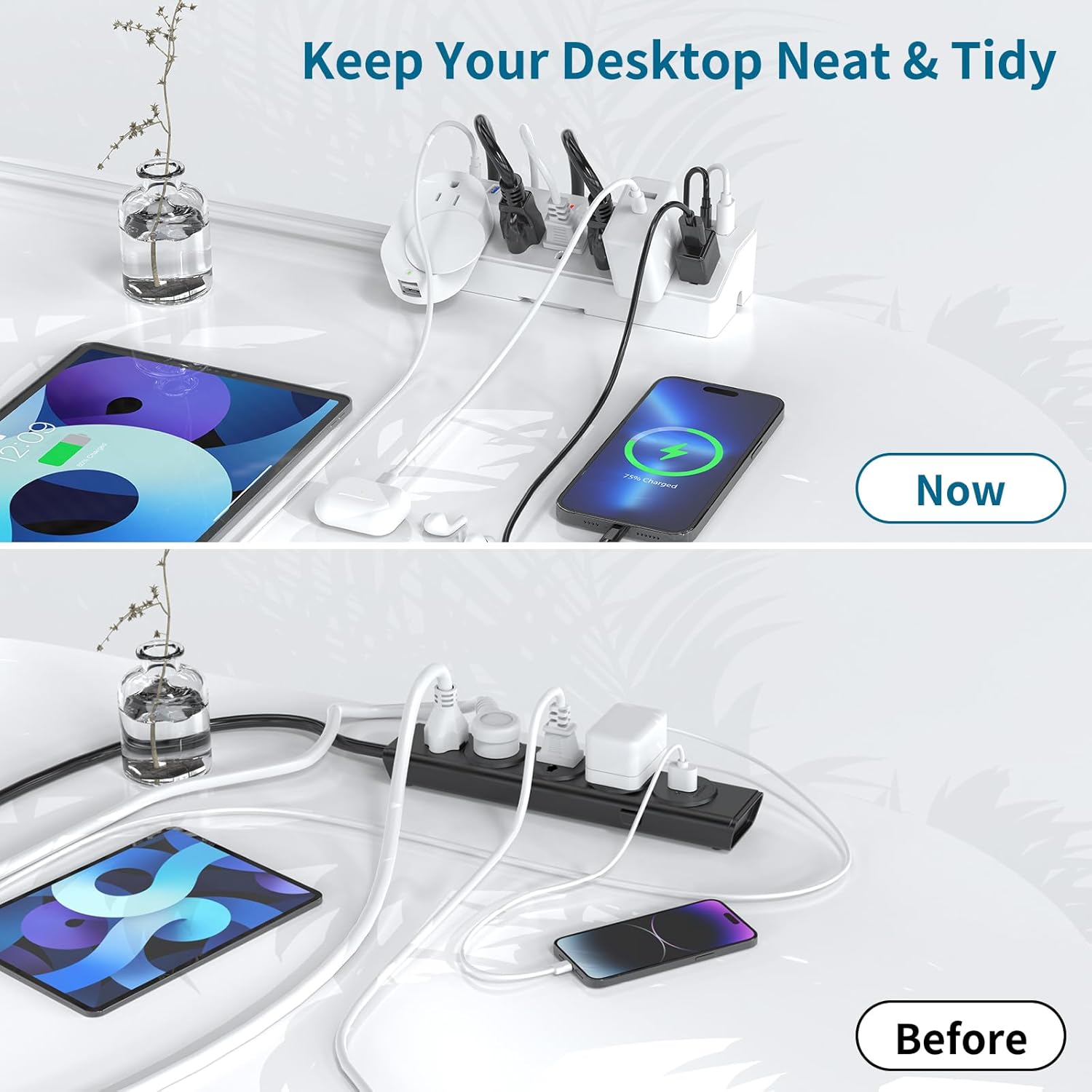 - 【Office Organizers for Desk】: Desk power strip with clamp and USB charger mount to the desk surface with an edge mount bracket for a secure hold. it clamps onto the back or side of your desk for a semi-permanent mount that won’t be knocked back into your nest of cords.