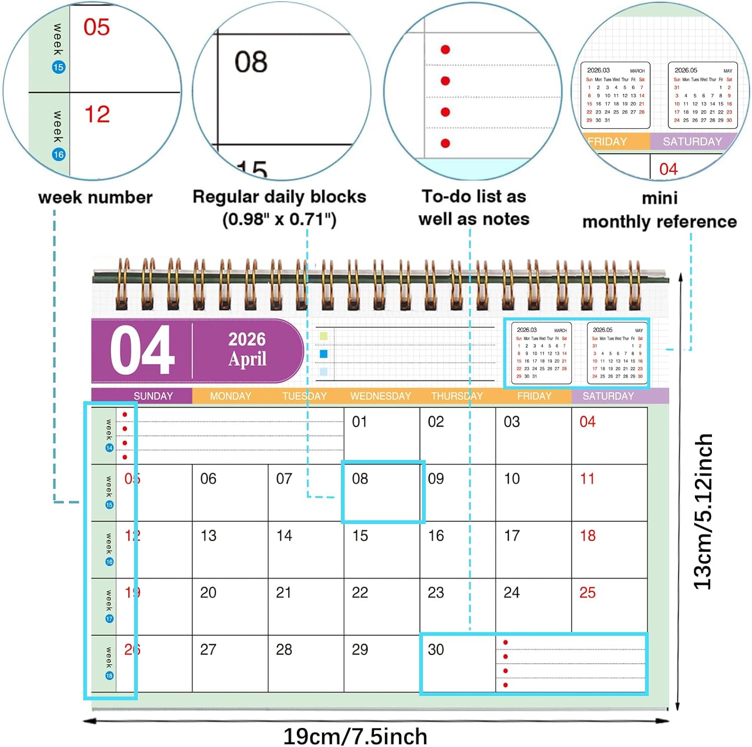 - ποΈ SMALL DESK CALENDAR - Size : 7.5 x 7 x 3.5 inch (19 x 17.5 x 9cm), Standing flip calendar has To-do list as well as notes +ruled daily blocks (0.98" x 0.71") + week number + mini monthly reference on the top and Notes area on back page, keep plans neat and legible, you ample space for scheduling your busy life.