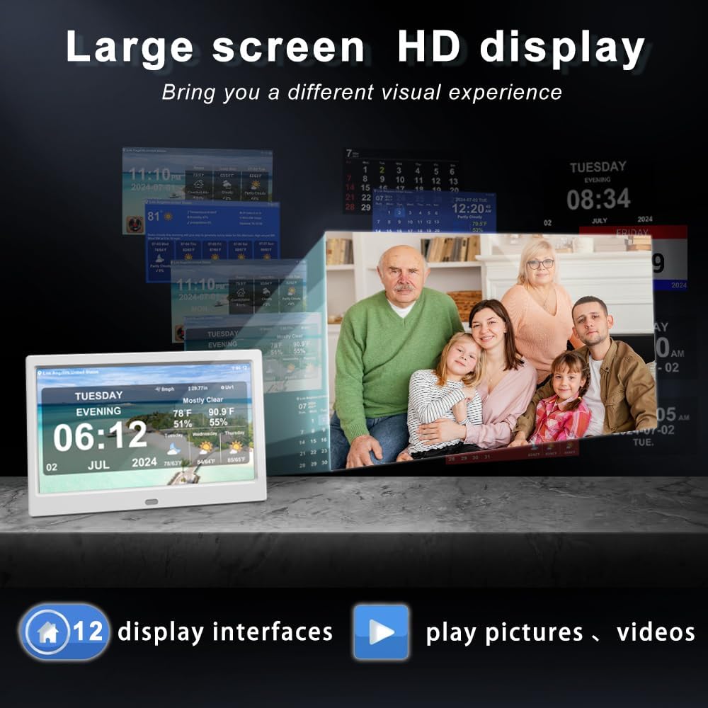 New Digital Weather Clock with Temperature Humdity Alarm Clock (10.1inch / White)