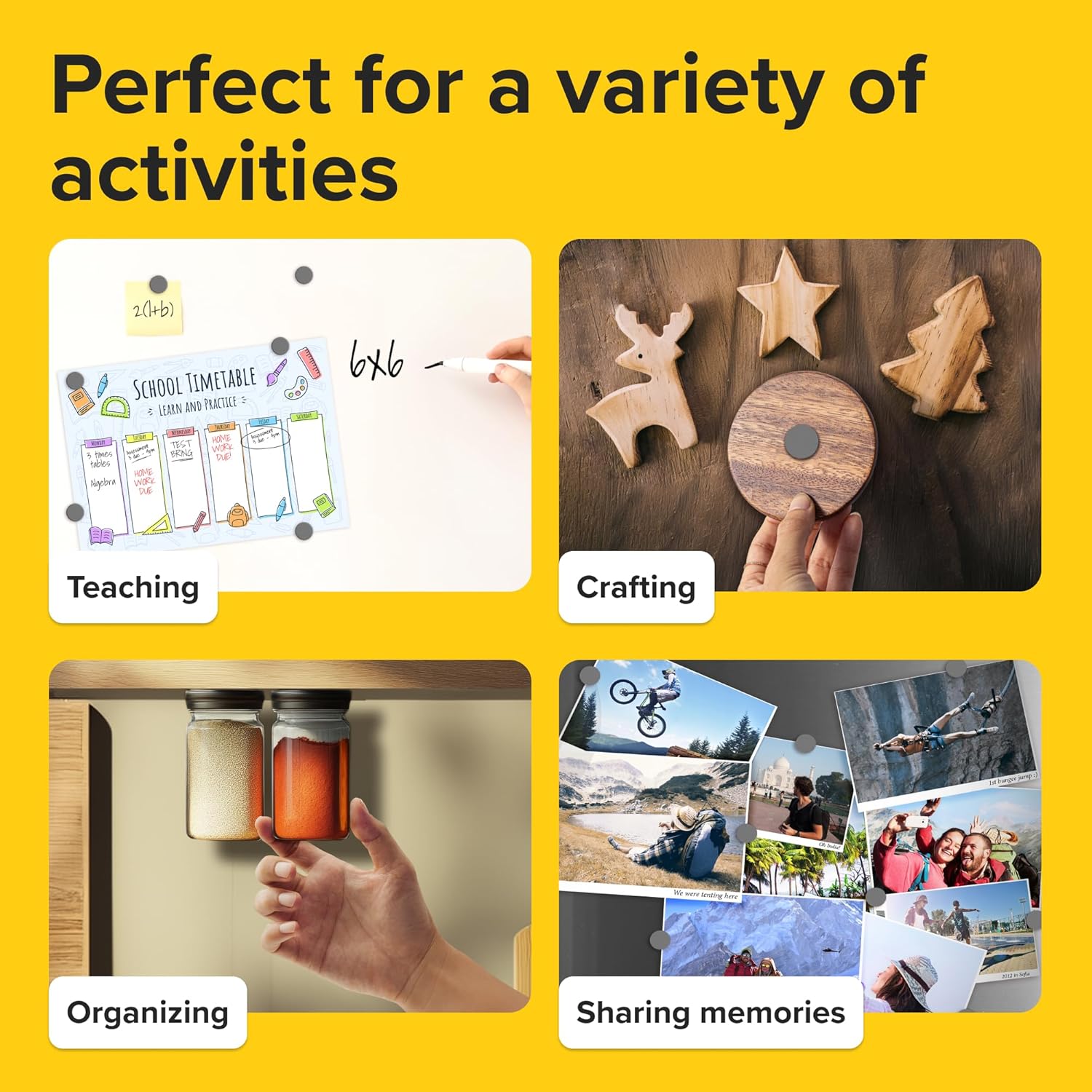 - Magnets that are prepared to stay. Our adhesive magnets are a great way to hang photos or to-do lists on your refrigerator.