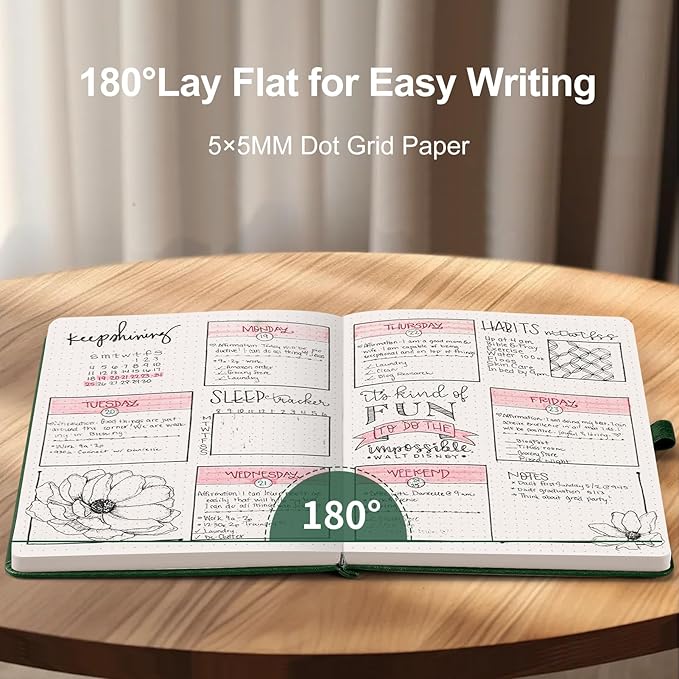 - BULLET DOTTED JOURNAL: This dot grid notebook features 64 sheets/128 pages, providing ample space for writing. The A5 size 5.7" × 8.3" makes it easy to carry. Crafted with a durable and waterproof vegan leather hardcover, it ensures your journal stay protected in any environment