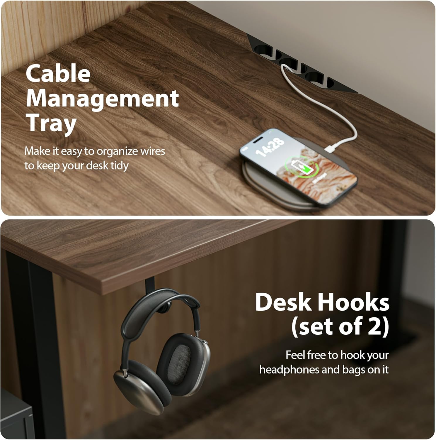 - γ63" Ample Workspaceγ63*55" L-shaped adjustable height desk is perfect for home office and gaming by providing large space. Extra-large space easily holds 3 desktop PCs, 1 laptop, and other office accessories.