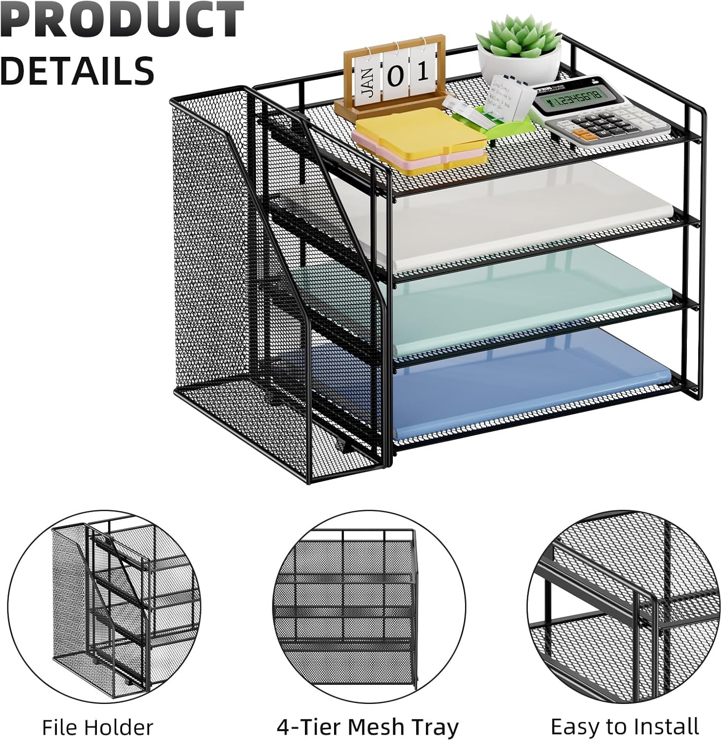 Marbrasse Desk Organizer and Accessories,4-Tier Paper Letter Tray Organizer with File Holder,Desk Accessories & Workspace Desktop Organizers for School Home Office Supplies (Black)