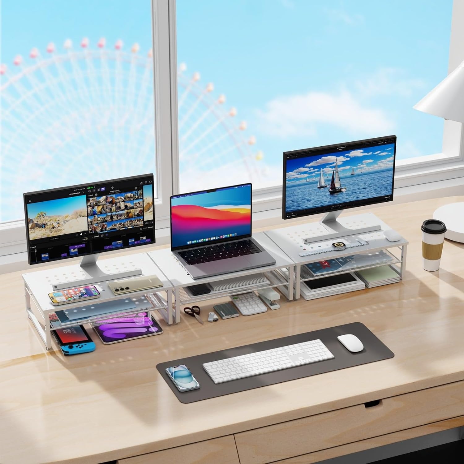gianotter 2-Tier Metal Monitor Stand Riser, Desk Accessories & Workspace Desk Organizers, Office Desk Storage Organizer for Office Supplies (White)