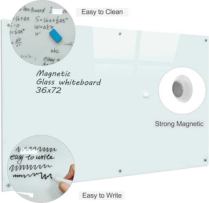Glass Magnetic White Board - 72 x36 Inches Dry Erase Whiteboard for Wall, Frameless Wrting Board for Display, Large Wall Mounted Glass Board for School, Office and Home