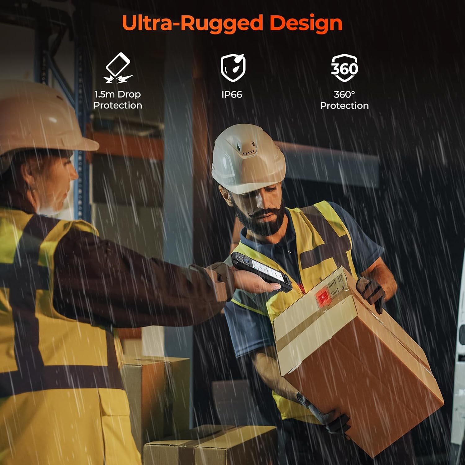 - [Ultra-Rugged Design]: MUNBYN 035Pro barcode scanner with keypad features an IP66 protection rating, offering exceptional resistance against dust and powerful water jets. This makes it perfect for dusty storage environments or operations where exposure to water is a concern. Additionally, this android handheld pda is tested to withstand drops from 1.5 meters, ensuring outstanding performance and stability even after accidental falls during frequent use