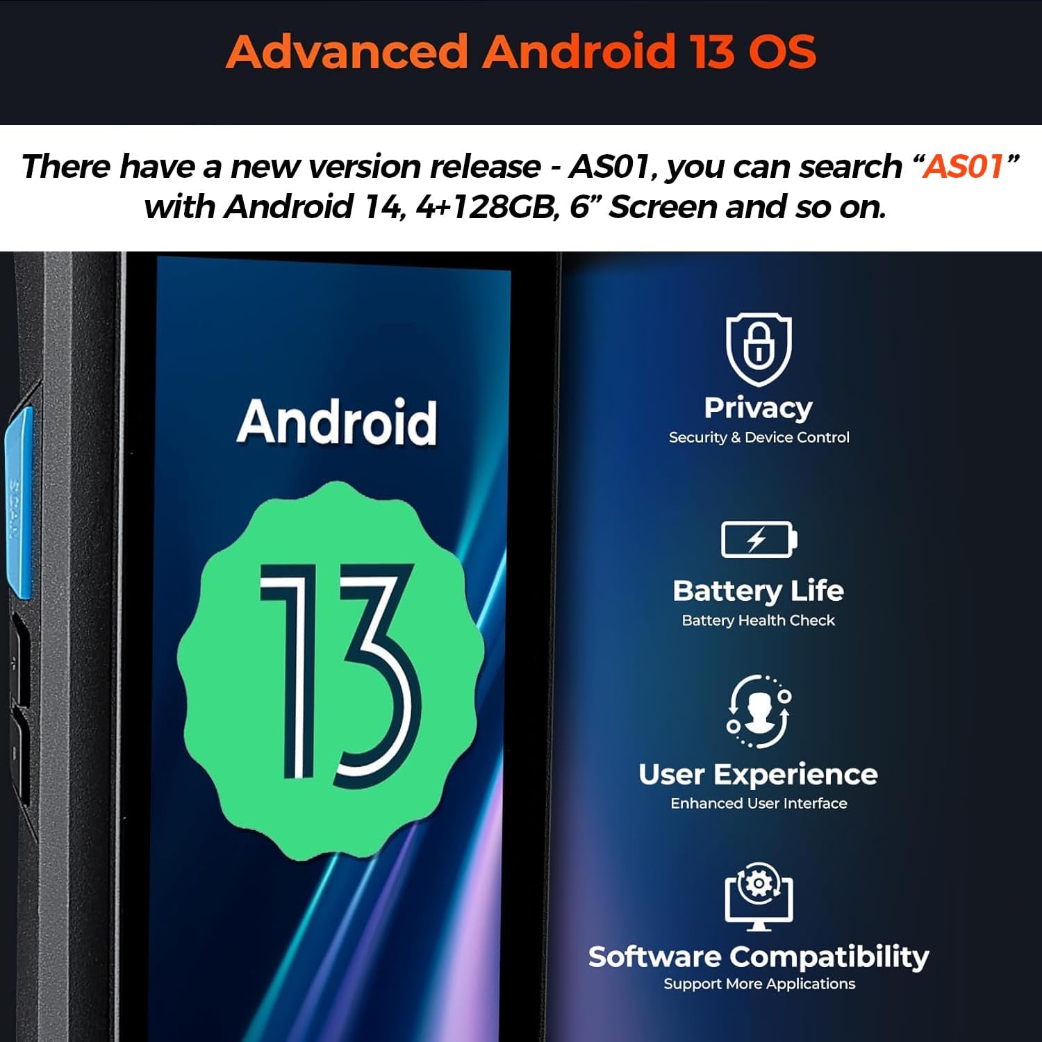 - [New Model] MUNBYN have new model released - AS01, you can search "AS01" or "B0DSW61MG3". Android 14, 4+128GB, 6" screen.