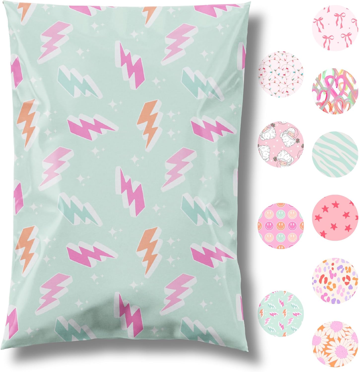 10x13 Designer Poly Mailer 100 Pack Heavy Duty Waterproof Self Seal Shipping Bags for Small Business Large Mailing Envelopes Bulk Tear Resistant Cute Packaging Lightning Bolt