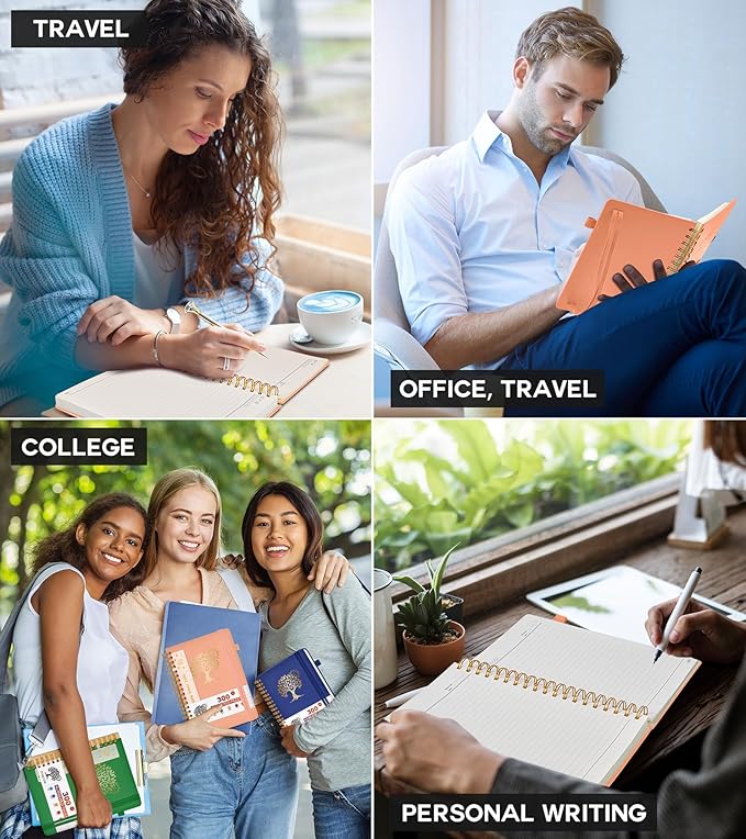 - 【Easy Tear-off Design & Thick Paper Quality】The spiral bound notebook pages are Easy to tear-off, ideal for sharing notes or removing pages without hassle. The thick paper minimizes ink bleed-through, ensuring clarity and legibility in your notes. Whether you're using it as a daily journal, travel journal, or journaling notebooks, this lined notebook offers a smooth writing experience. As a wide ruled notebook, it's perfect for thorough note-taking.