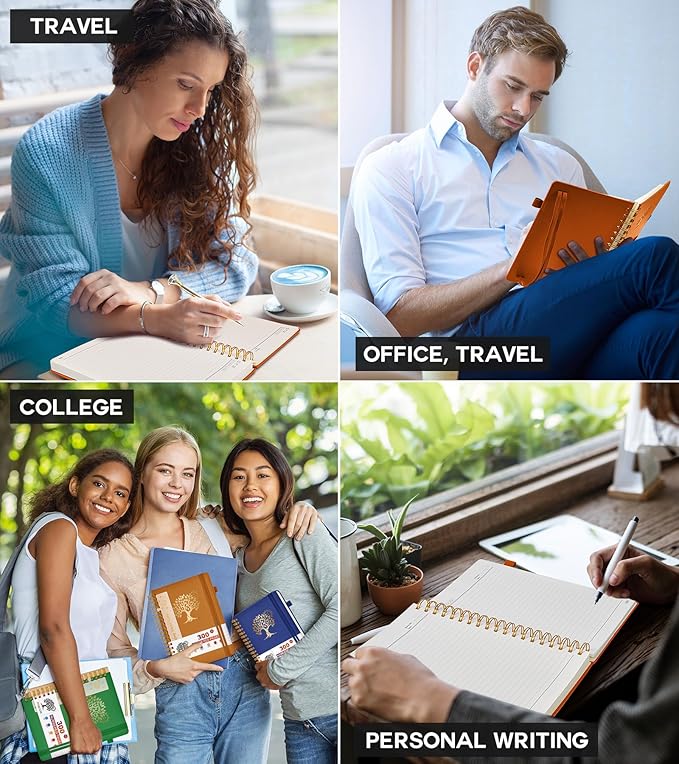 - 【Easy Tear-off Design & Thick Paper Quality】The spiral bound notebook pages are Easy to tear-off, ideal for sharing notes or removing pages without hassle. The thick paper minimizes ink bleed-through, ensuring clarity and legibility in your notes. Whether you're using it as a daily journal, travel journal, or journaling notebooks, this lined notebook offers a smooth writing experience. As a wide ruled notebook, it's perfect for thorough note-taking.