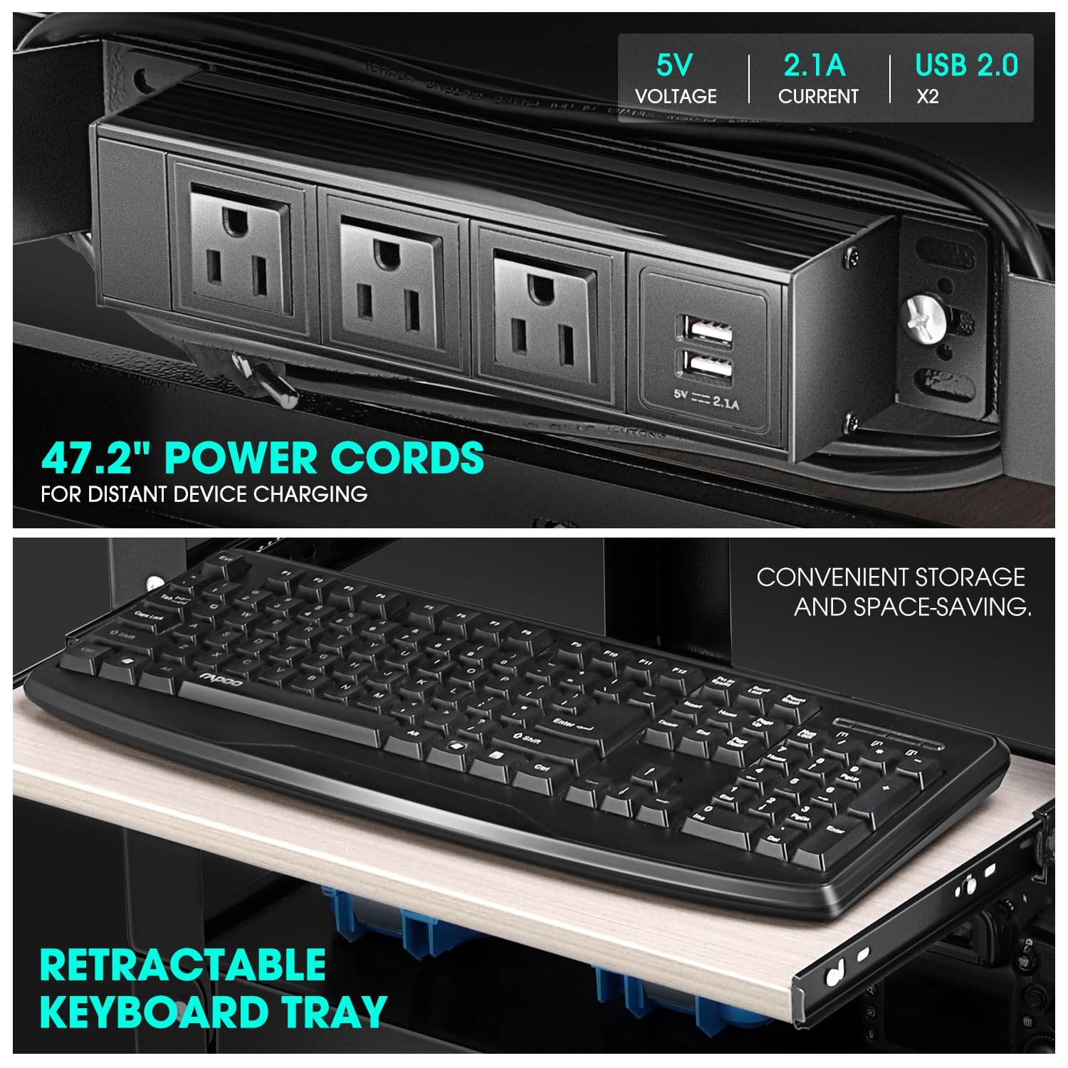 DNA MOTORING Steel AV Cart 3-Layer Rolling Projector Utility Cart, 24" X 18" X 24.6"- 42.5" Height Adjustable, with Wheels, Pullout Keyboard Tray, Power Strip, Cord Management, TOOLS-00497