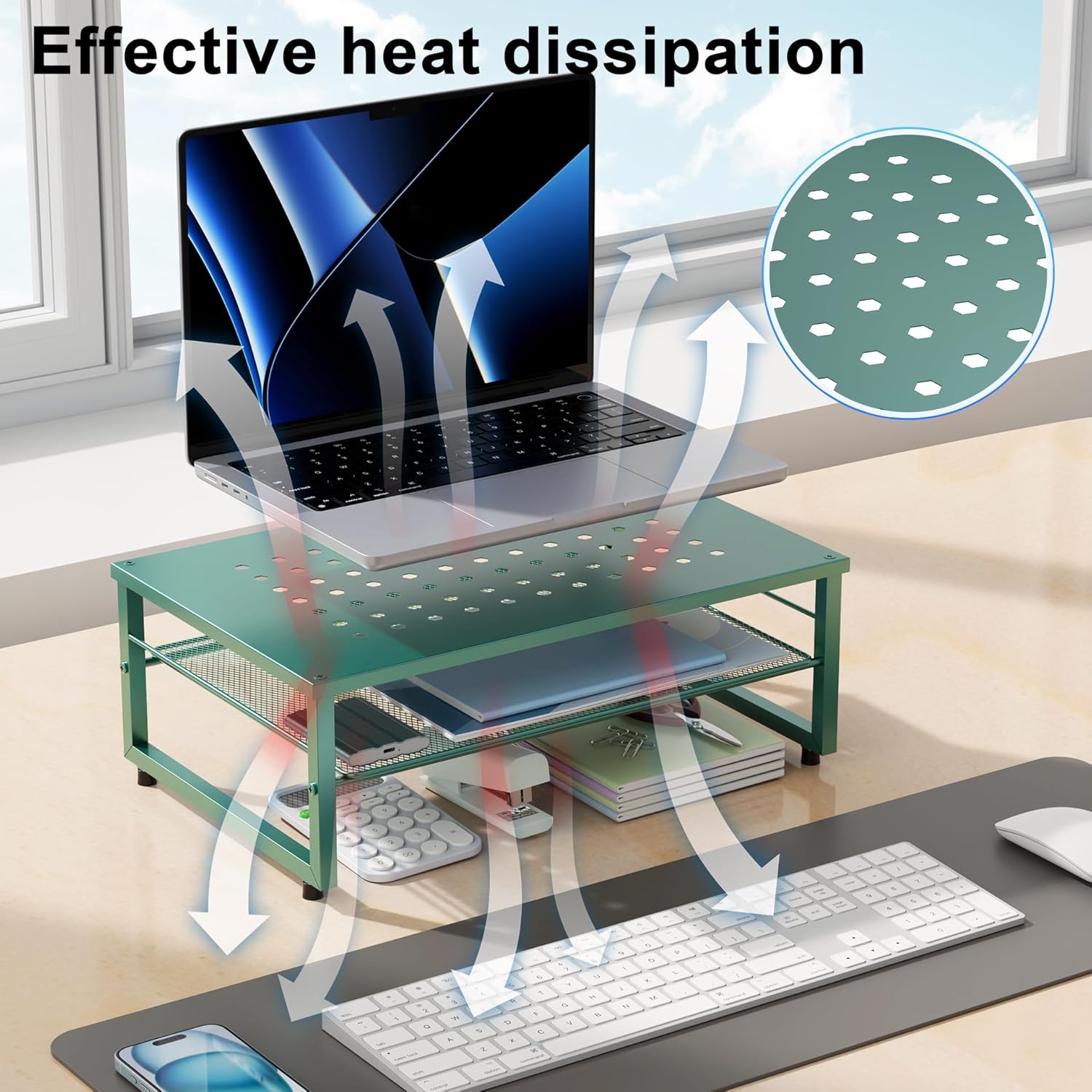gianotter 2-Tier Metal Monitor Stand Riser, Desk Organizer for Monitor, Office Desk Storage Organizer for Office Supplies (Dark Green)