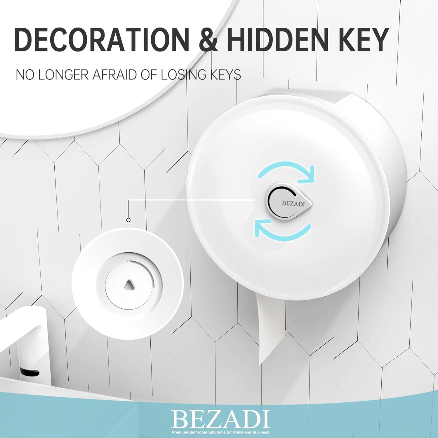 Paper Towel Dispenser Wall Mount, Jumbo Roll Toilet Paper Dispenser Key Lock Commercial Household Large Capacity White