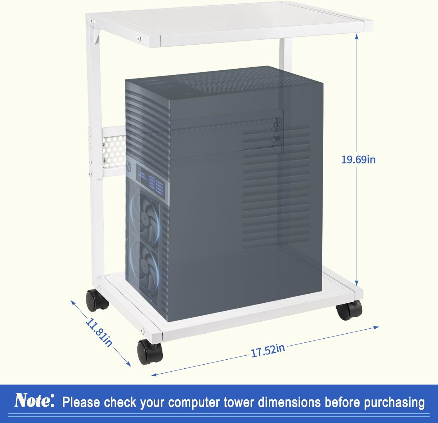 - Suitable for Most Computer Towers: Computer tower stand length: 17.52 inches, width: 11.81 inches, internal height: 19.69 inches, can support most computer towers on the market. Note: Please specify the main dimensions before purchasing.