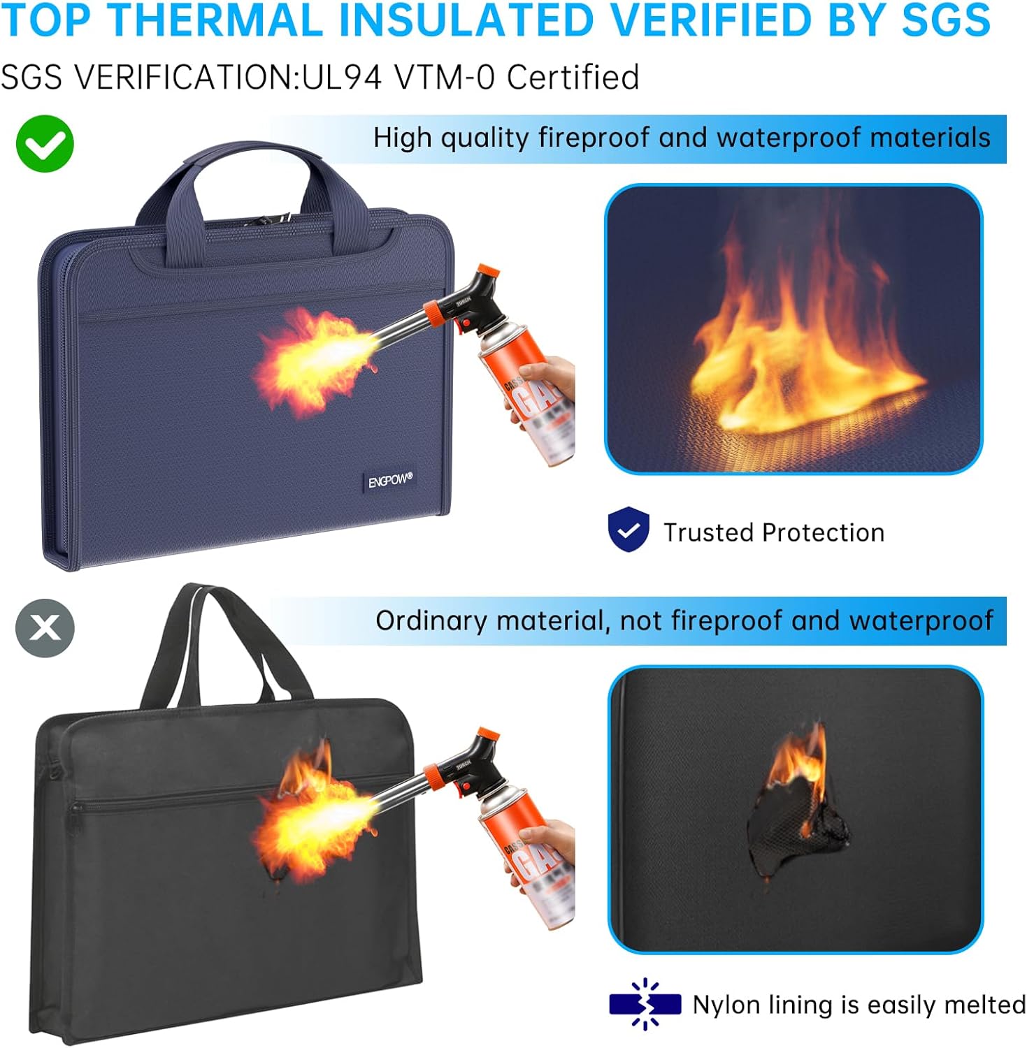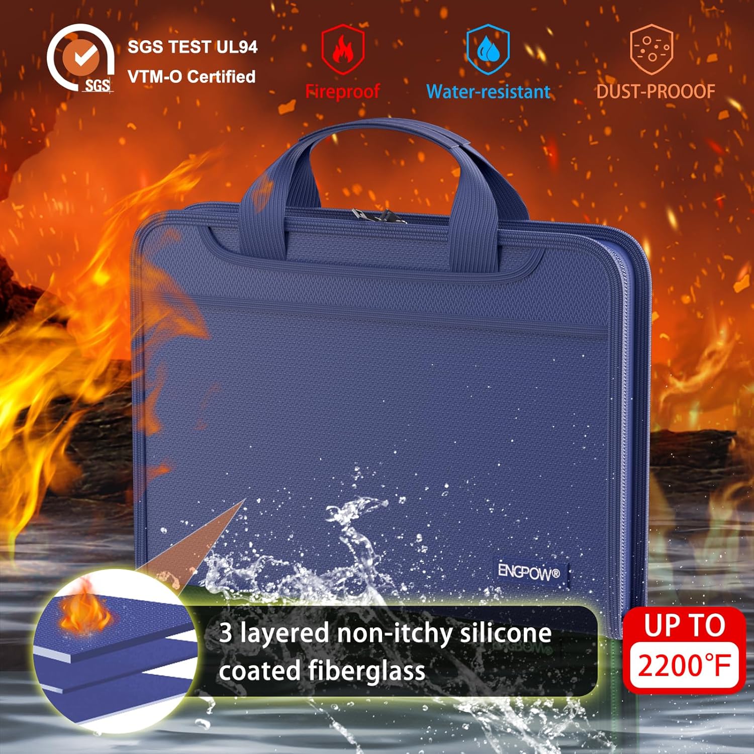 - High-Quality Materials: Protect your files with ENGPOW fireproof accordion file organizer.It is made of 3-layered non-itchy silicone-coated fiberglass which withstand the temperature up to 2200β.It has been passed by SGS TEST(UL94 VTM-0 Certified).Fireproof File Folder is fireproofοΌWater-resistant,which can effectively protect your important documents in a fire,flood,and wet weather. They will further keep your files intact.Giving you time to save your important documents when disaster strikes