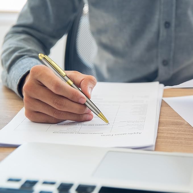 - ✅ Well-Balanced Writer - Twist to retract the ballpoint pen easily, and the nib glides smoothly but not loose. Each pen is made of solid metal but only weighs 24.7g / 0.87oz. You can use it for long hours of writing without getting tired.