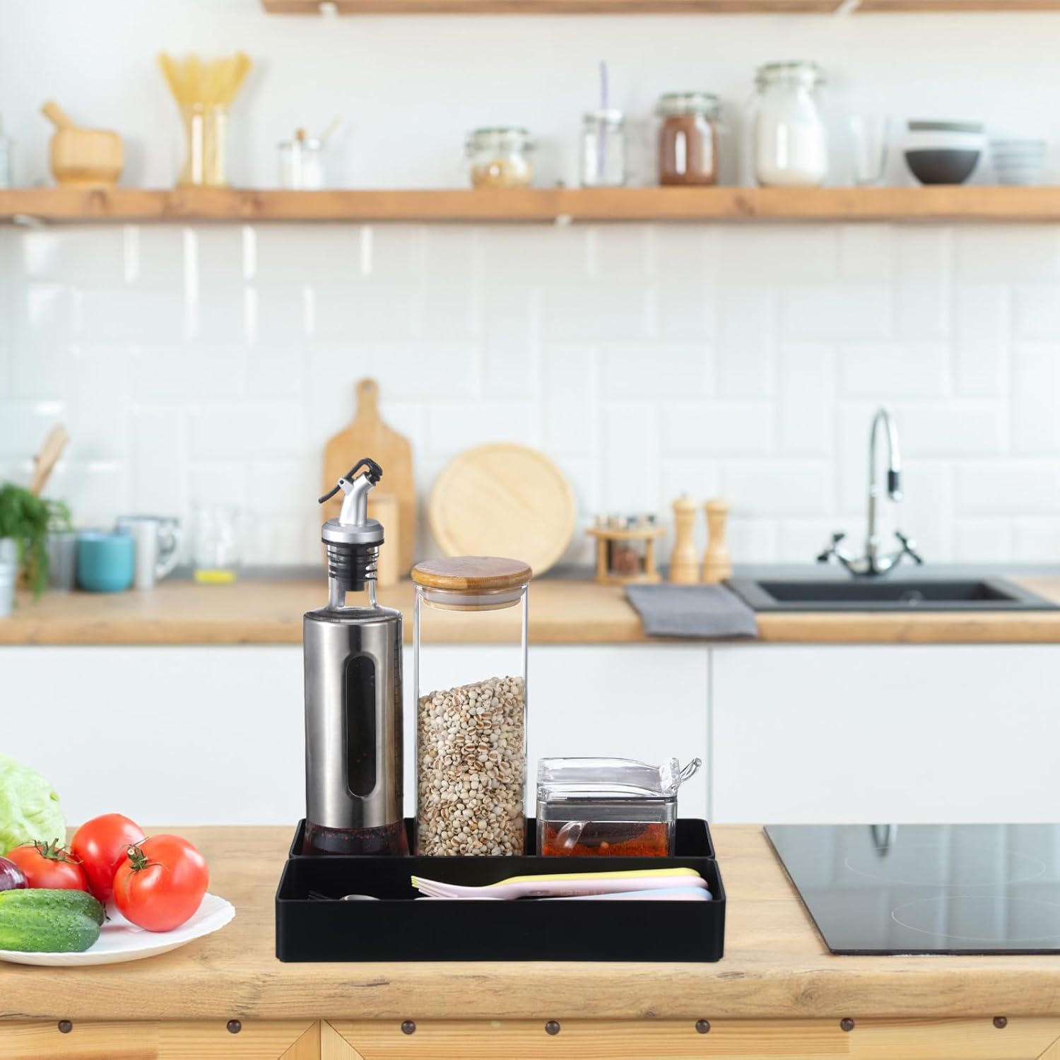 Teling 2 Pcs 4 Piece Large Black Rectangular Desk Organizer Set, Half Accessory Tray, Plastic Tabletop Organizer for Office, Home, or Study, Dimensions: 9.45 x 2.95 x 1.38 Inches