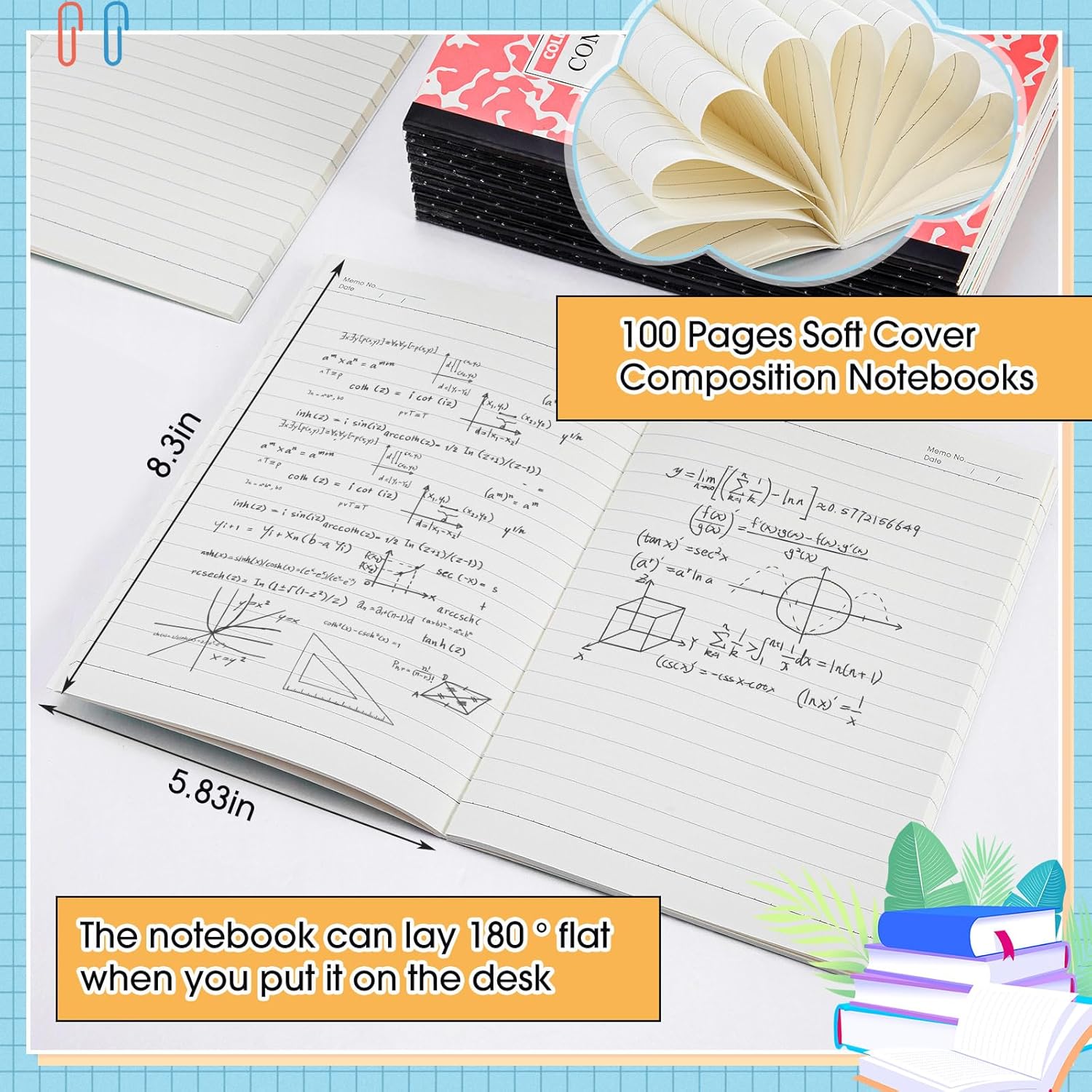 - Wide Application: this composition notebook is versatile, elementary and college students can use it to write notes or turn in assignments, office workers can use it to organize daily work schedule and jot down important milestones