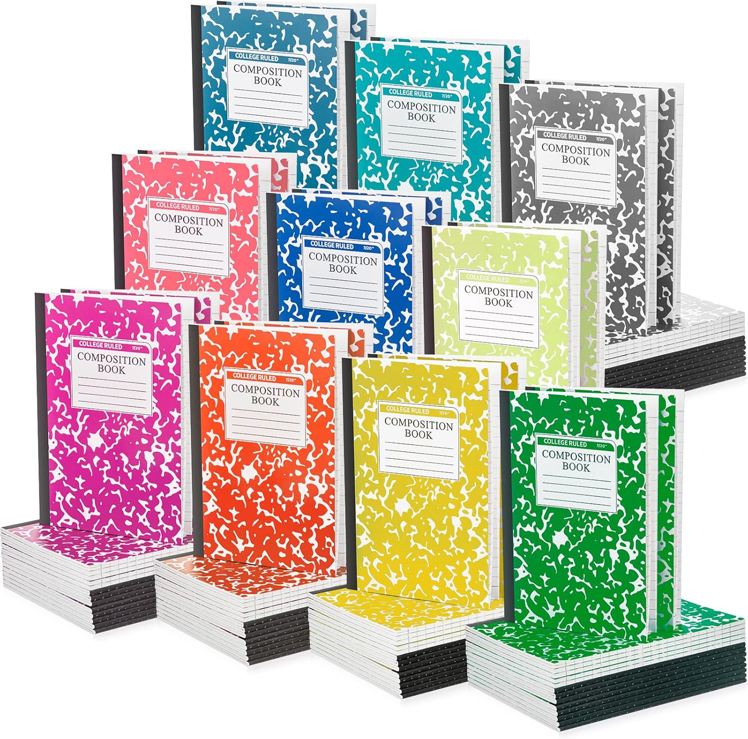 - Sufficient Quantity: you will get 100 pack composition notebooks bulk in 10 different light colors, 10 of each color, measuring approximately 8.2 x 5.5 inches; The classic marble composition will safeguard your important notes, and the sufficient quantity and colors will meet your needs for use and replacement